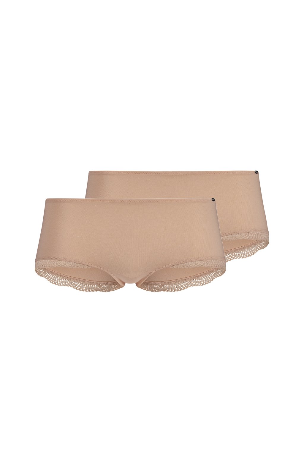 Dámske nohavice obopínajúce boky v dvojitom balení | rozparky na nohaviciach so zvýraznenou čipkou | spodná bielizeň z elastickej bavlny | spoľahlivé pohodlie po celý deň