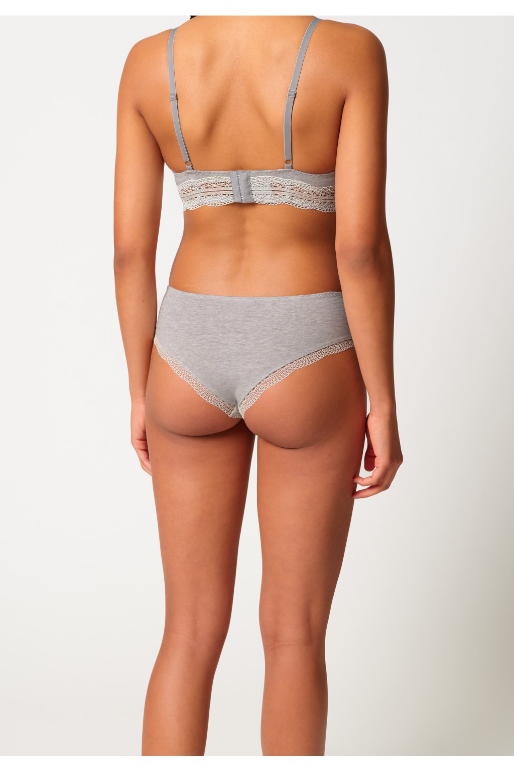Jedny nohavičky, veľa možností – a dvakrát. Tieto dámske nohavičky so ženským čipkovaným detailom sú všestranné a vždy pohodlné a dobre vyzerajúce. Má bedrový strih a vďaka strečingu sa dobre prispôsobí jednotlivcovi. Krásny celkový look tvoria drzé nohavičky a ladiaca podprsenka.