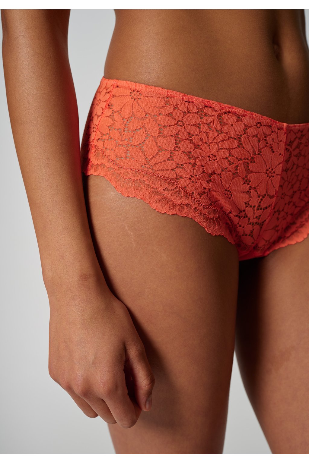 Hipster nohavičky so skromným zakrytím zadočku | Celočipkované nohavičky vpredu a vzadu | Bavlnený klin s podšívkou | Elastická čipka s kvetinovým vzorom | Mierne priehľadné pre skvelý vzhľad