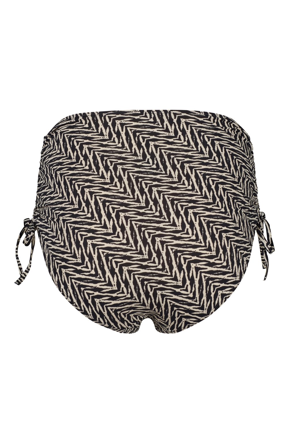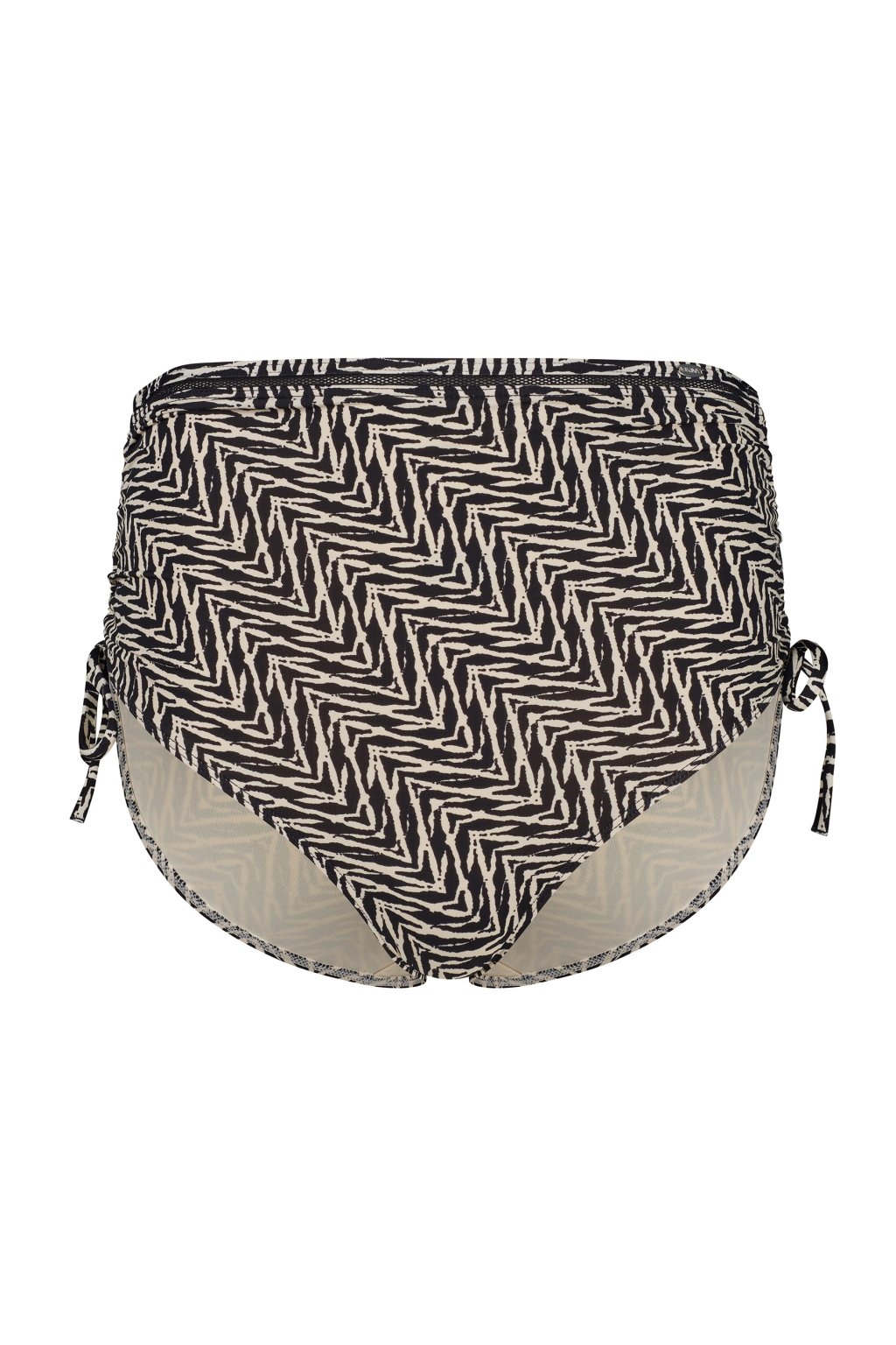 Vysoko strihané nohavičky s vysokým pásom ako plavky. Pekný sieťovaný detail v páse na prednej strane. Úzka elastická časť nohavíc a pásu na vnútornej strane. Bočné zaväzovanie pre prispôsobenie strihu a bočné voľnenie. Plavky vyrobené z mikrovlákna s recyklovaným polyamidom.