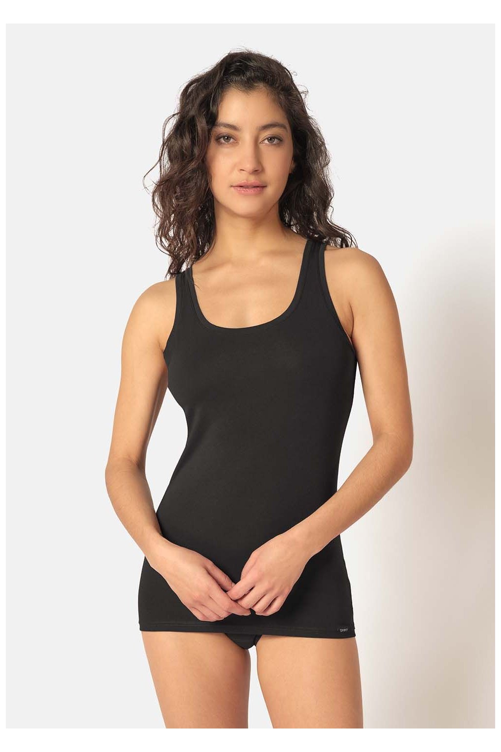 Dámske tielko s rovnými ramienkami | Základné tričko s okrúhlym výstrihom | Priliehavý strih ideálny ako tielko | Plochá úprava ramien a výstrihu | Spodné tričko z mäkkej bavlny pre vysoký komfort pri nosení
