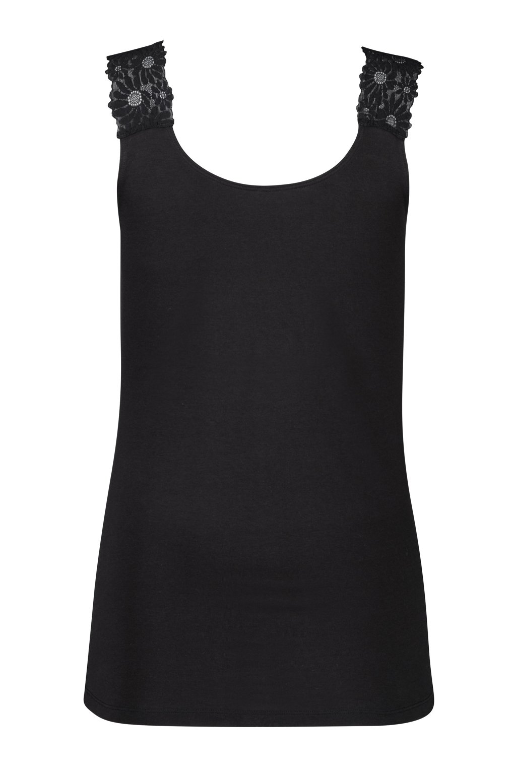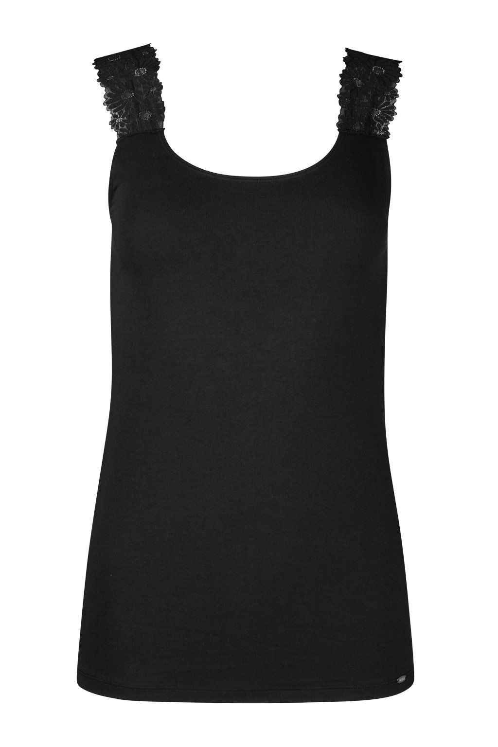 Tielko s ramienkami z peknej čipky | Tričko s nadčasovým okrúhlym výstrihom | Telo obopínajúci strih zvýrazňujúci siluetu | Príjemná zmes bavlny a elastanu