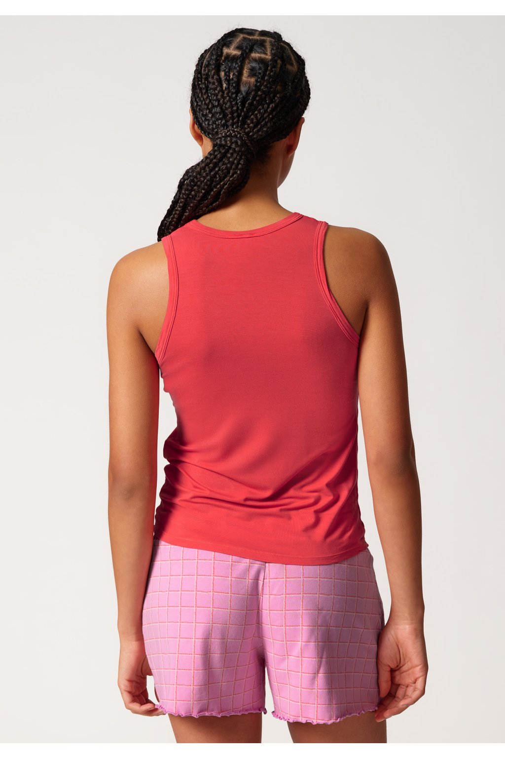 Všetko je tu naozaj veľmi dobré. Toto tielko obopínajúce postavu s okrúhlym výstrihom a lemovaním na ramenách a krku vám padne ako druhá koža. Skvelý strih podčiarkujú mäkké viskózové vlákna z bambusu. Pohodový vzhľad nočného oblečenia, v ktorom sa budete cítiť dobre.