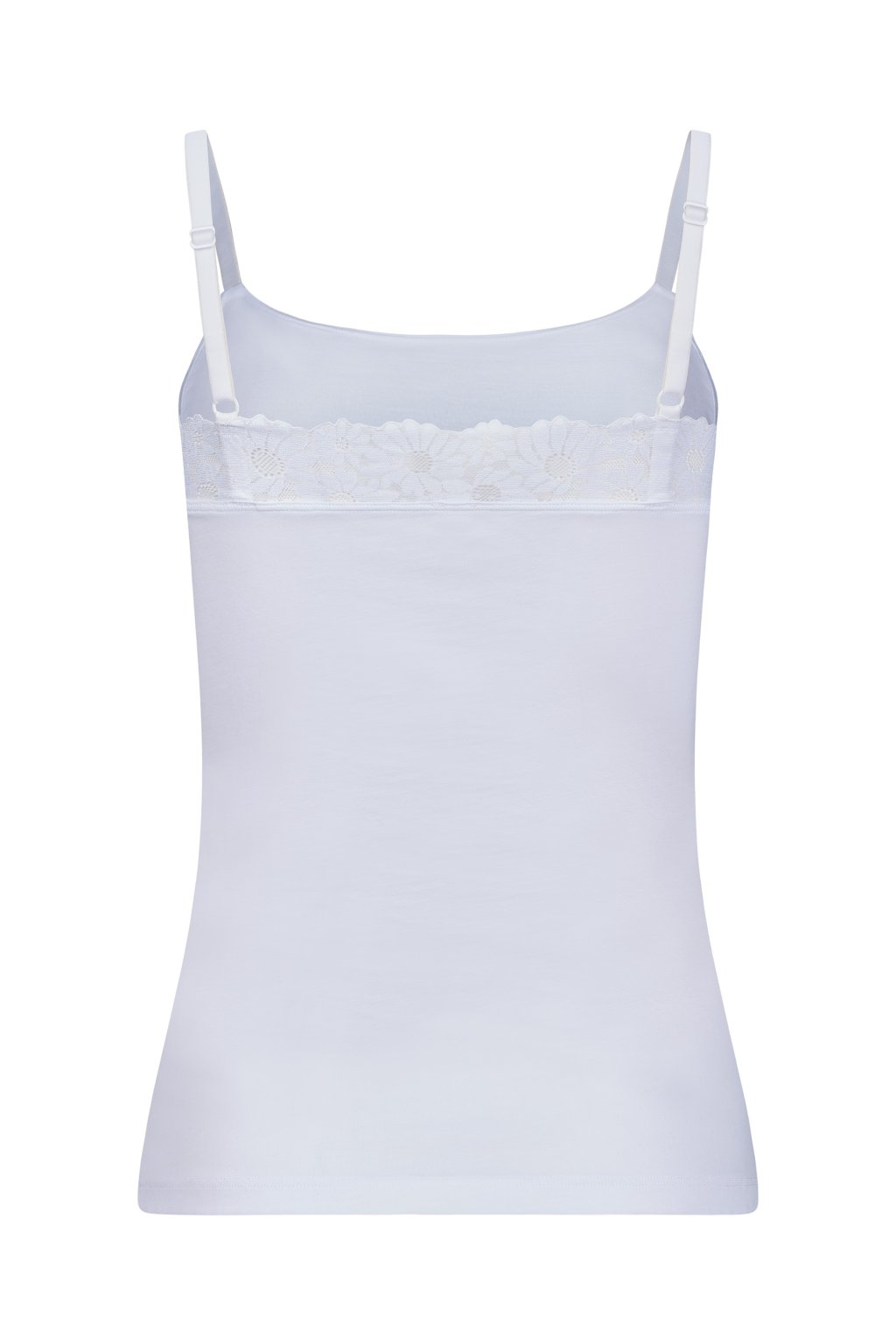 Dámske tričko so špagetovými ramienkami | Čipkované detaily v podpazuší a na chrbte | Dobre padnúce vďaka nastaviteľným ramienkam | Príjemná elastická bavlnená tkanina