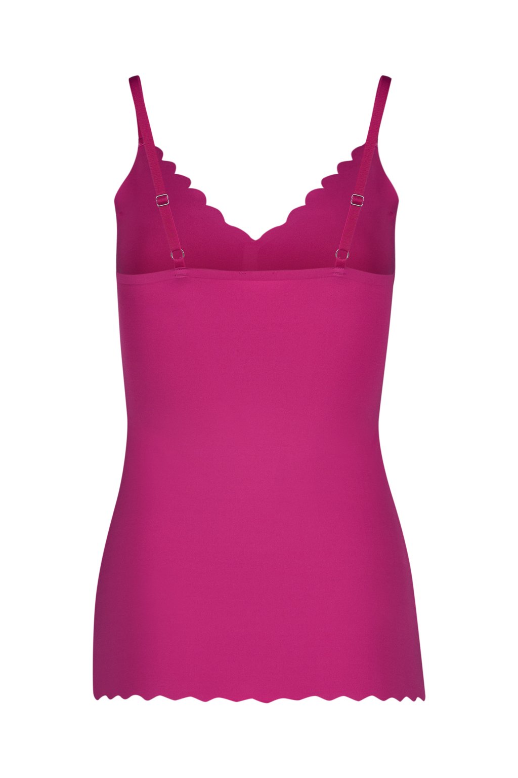 Špagetový top s odnímateľnými vypchávkami | Výstrih do V s vrúbkovaným okrajom | Podprsenka s nastaviteľnými ramienkami pre pevný strih | Ideálna na nosenie pod podprsenkou vďaka priliehavému strihu | Vrchný diel podprsenky z elastického a mäkkého mikrovlákna