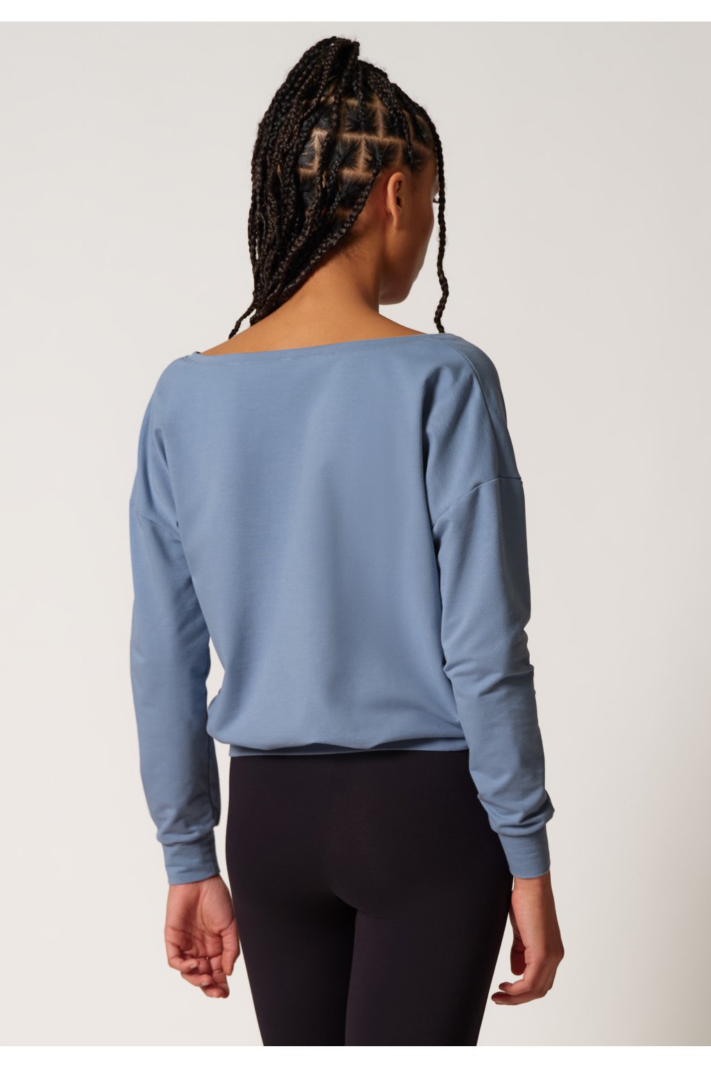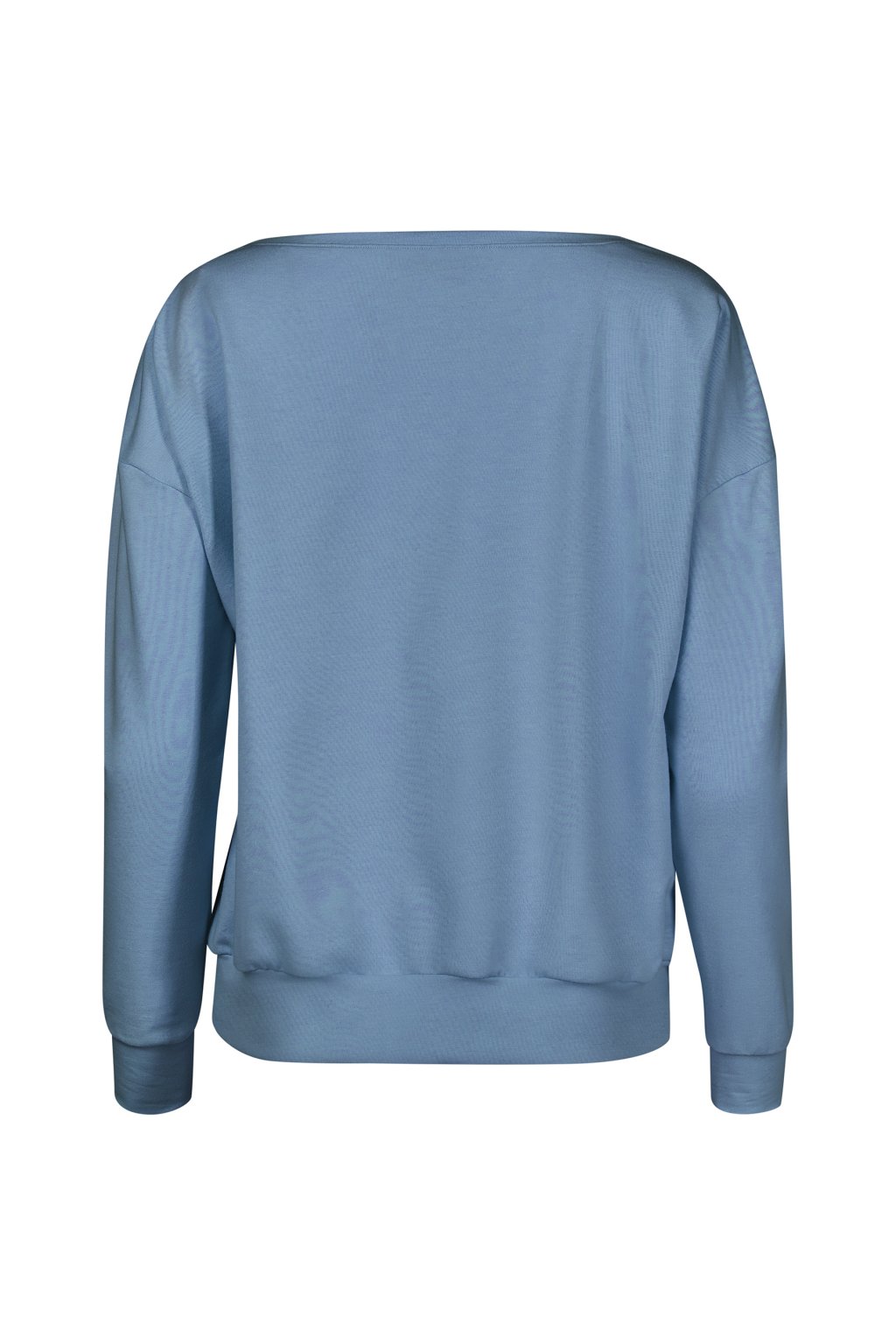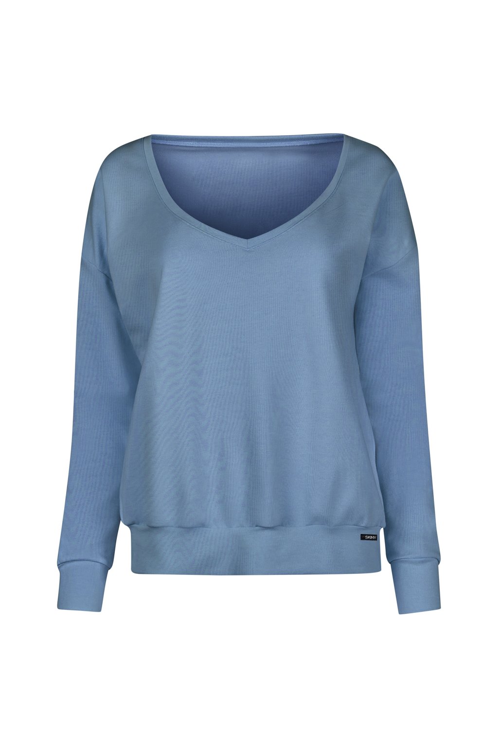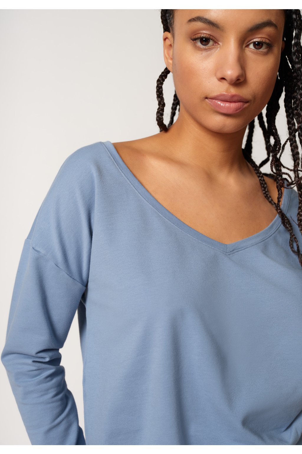 Štýlové dámske tričko s dlhými rukávmi | Veľký výstrih do V s miernym zaoblením | Pyžamový top s manžetami na spodnom okraji | Voľný strih so spadnutými ramenami | Kvalitný loopback