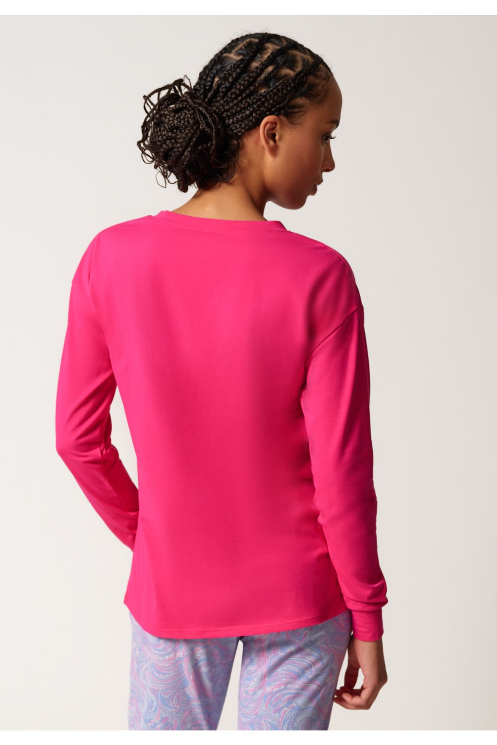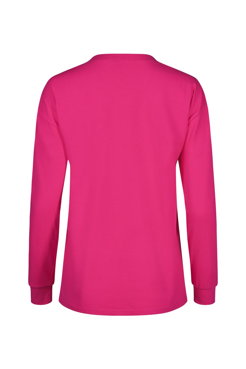 Pohodlne zaspať kedykoľvek alebo jednoducho relaxovať na pohovke? Toto krásne dámske tričko s dlhým rukávom z mäkkej bavlny vám to umožní a spája v sebe útulnosť a štýl. Od voľného strihu až po manžety na spodnom okraji je táto dámska košeľa starostlivo premyslená a je jednoducho super cool.