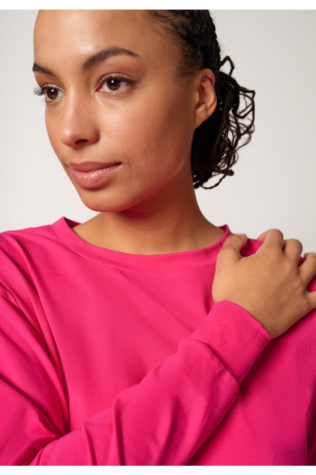 Košeľa s dlhými rukávmi a okrúhlym výstrihom | Spustené ramená pre uvoľnený štýl | Jemné manžety na spodnom okraji rukávov | Mäkká tkanina z bavlny a elastanu