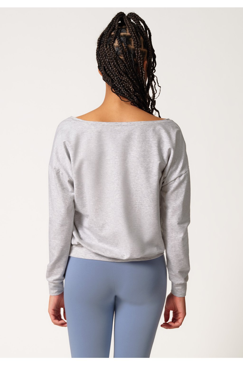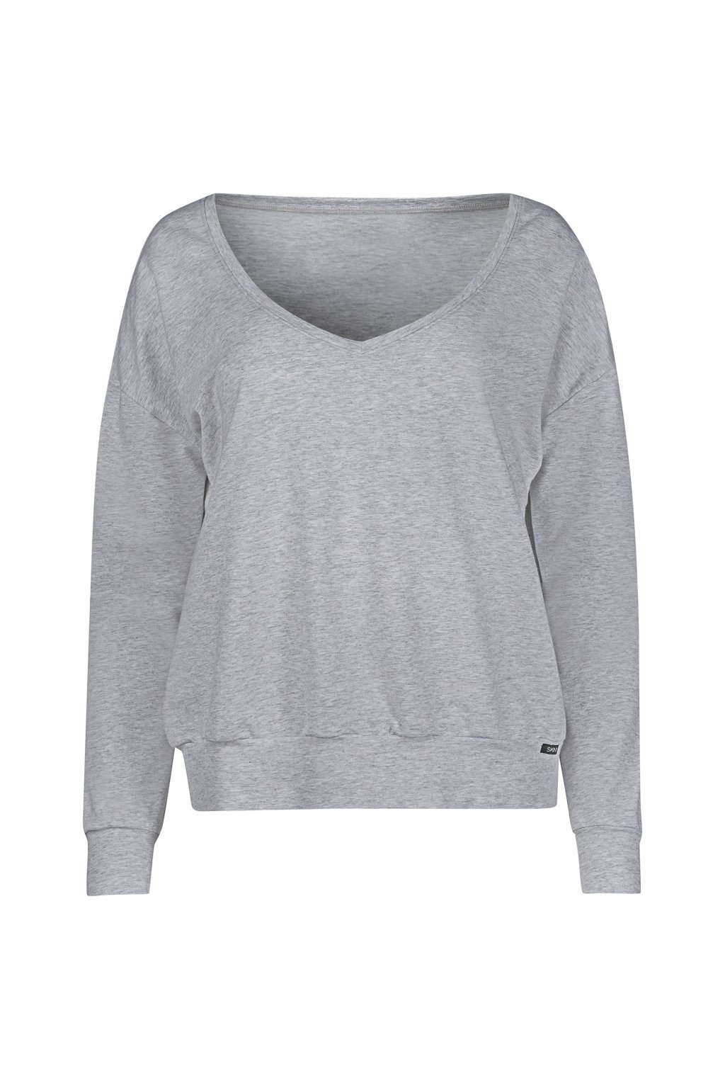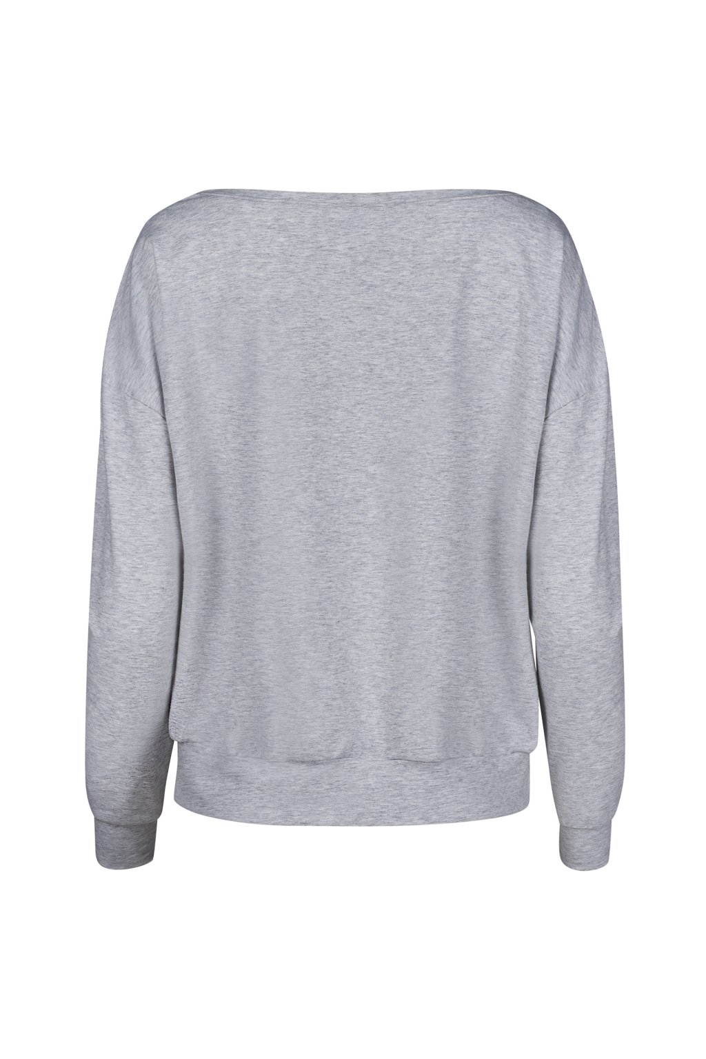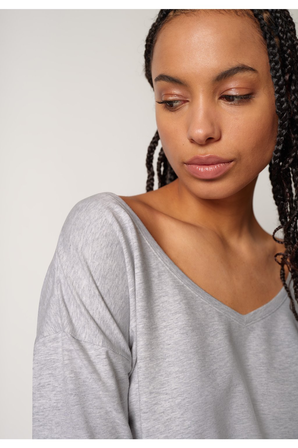 Štýlové dámske tričko s dlhými rukávmi | Veľký výstrih do V s miernym zaoblením | Pyžamový top s manžetami na spodnom okraji | Voľný strih so spadnutými ramenami | Kvalitný loopback