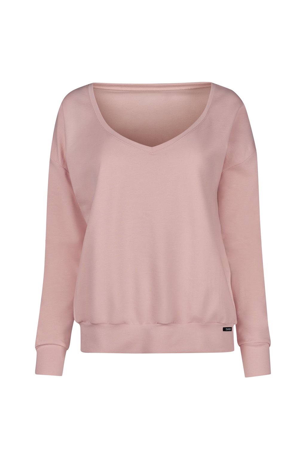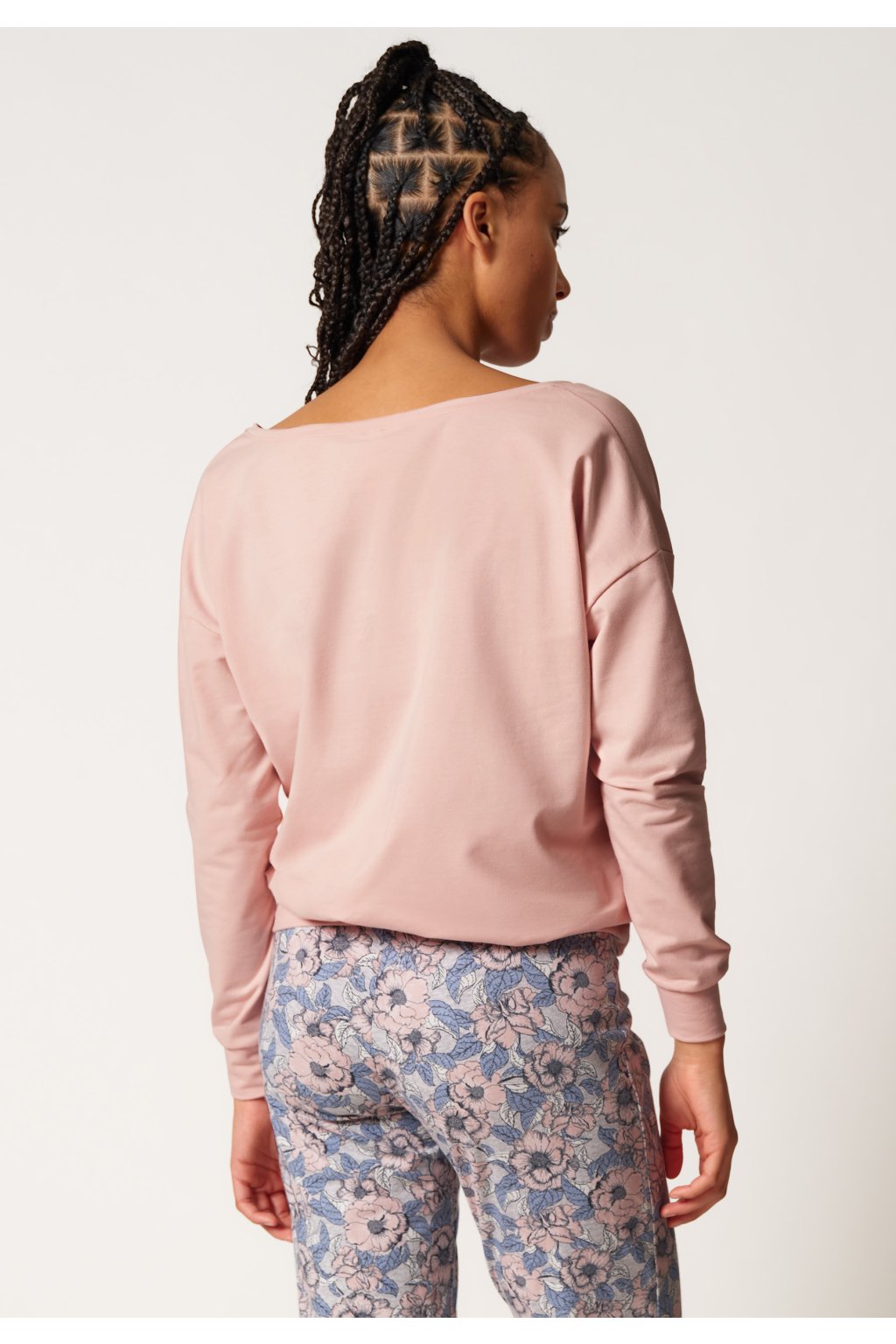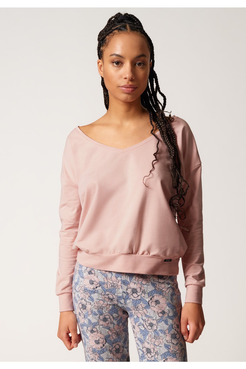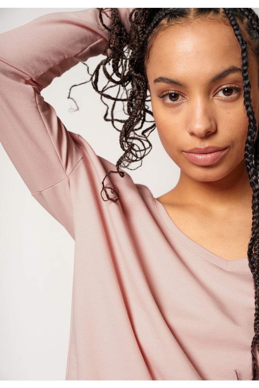 Štýlové dámske tričko s dlhými rukávmi | Veľký výstrih do V s miernym zaoblením | Pyžamový top s manžetami na spodnom okraji | Voľný strih so spadnutými ramenami | Kvalitný loopback
