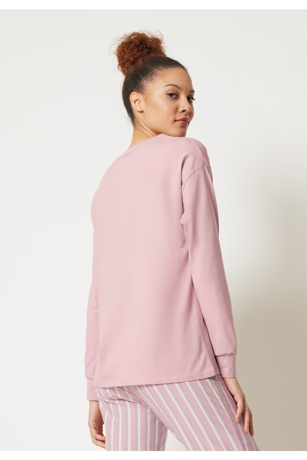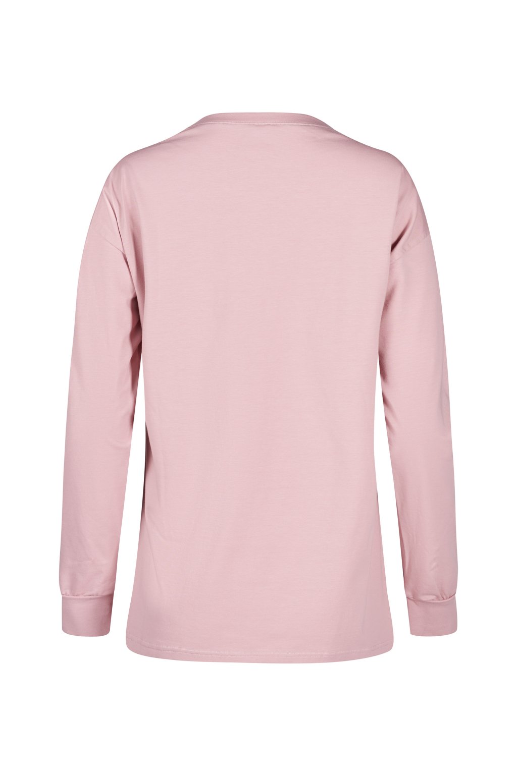 Pohodlne zaspať kedykoľvek alebo jednoducho relaxovať na pohovke? Toto krásne dámske tričko s dlhým rukávom z mäkkej bavlny vám to umožní a spája v sebe útulnosť a štýl. Od voľného strihu až po manžety na spodnom okraji je táto dámska košeľa starostlivo premyslená a je jednoducho super cool.