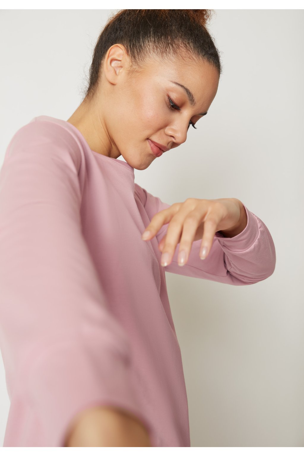 Košeľa s dlhými rukávmi a okrúhlym výstrihom | Spustené ramená pre uvoľnený štýl | Jemné manžety na spodnom okraji rukávov | Mäkká tkanina z bavlny a elastanu