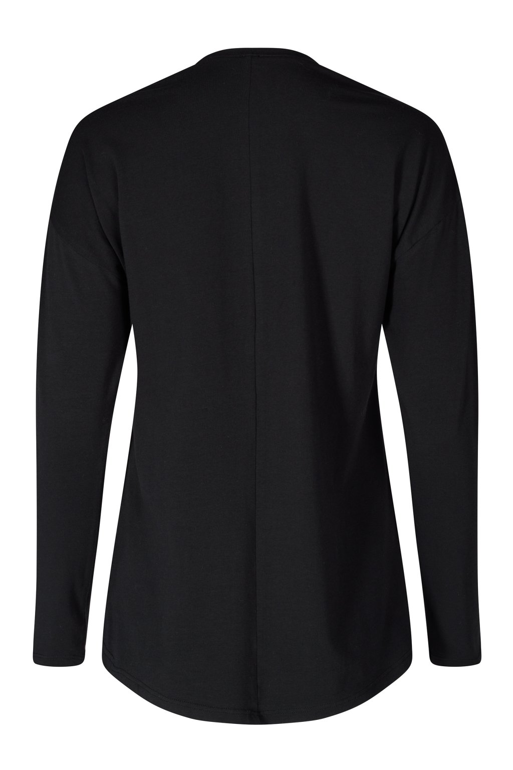Pohodlné tričko s dlhým rukávom pre ženy na spanie\Model s voľným strihom a okrúhlym výstrihom\Dlhší, zaoblený lem vzadu