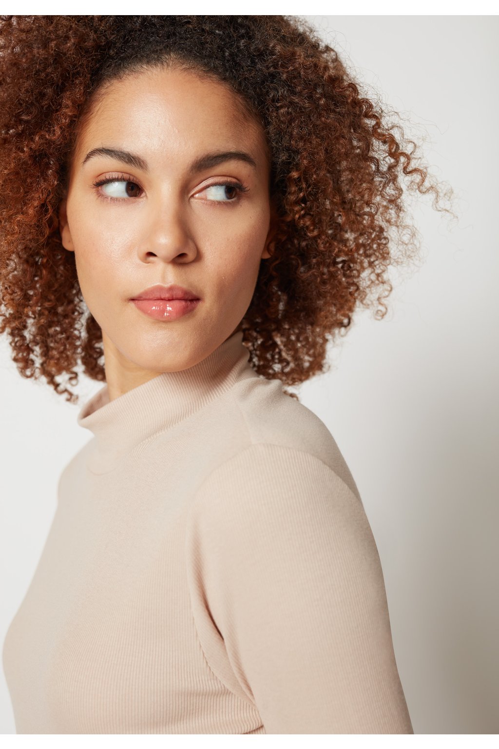 Pyžamový top s dlhým rukávom\Štýlový rolák\Top s dlhým rukávom a priliehavým strihom\Rebrovaná látka z mäkkej viskózovej bavlny\Vysoký komfort nosenia vo dne aj v noci