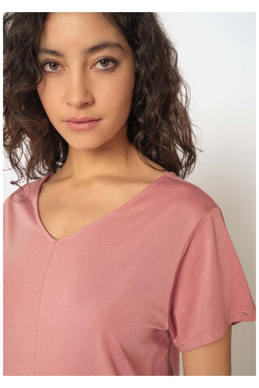 Pohodlné tričko s krátkym rukávom pre ženy na spanie. Hodí sa k nočnému prádlu zo série Sleep & Dream. Model sa dá nosiť s výstrihom do V alebo s okrúhlym výstrihom.