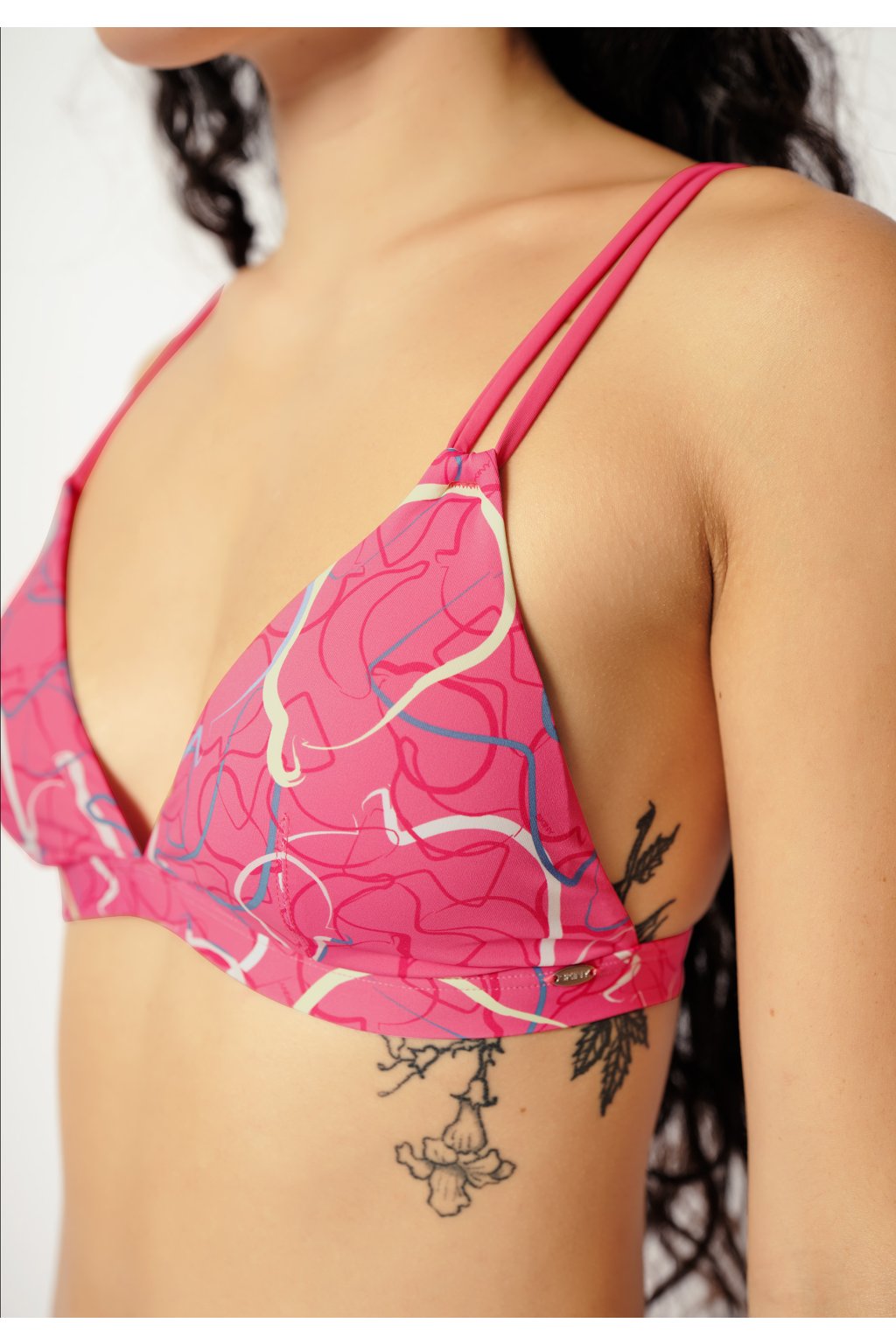 Trojuholníkový strih bikín | Odnímateľné vypchávky pre väčšiu flexibilitu | Dvojité ramienka vpredu | Plavky so širokým pásom pod prsiami | Udržateľné mikrovlákno vyrobené z recyklovaného polyamidu
