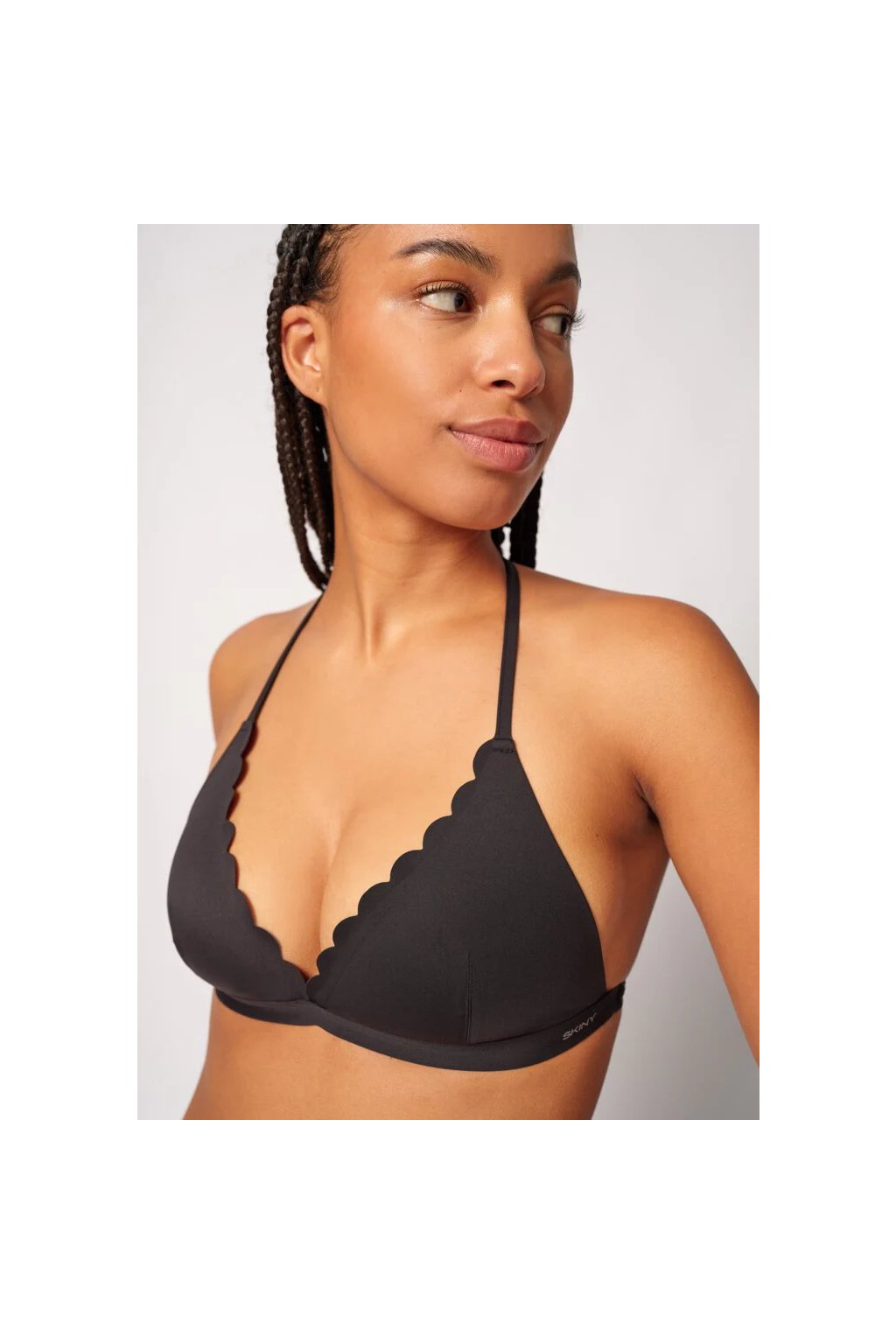 Vystužený vrchný diel bikín v trojuholníkovom štýle | elastický pás pod prsiami | zaväzovanie na chrbte a za krkom | strih a lepený okraj vo výstrihu | elastické mikrovlákno pre individuálne pohodlie