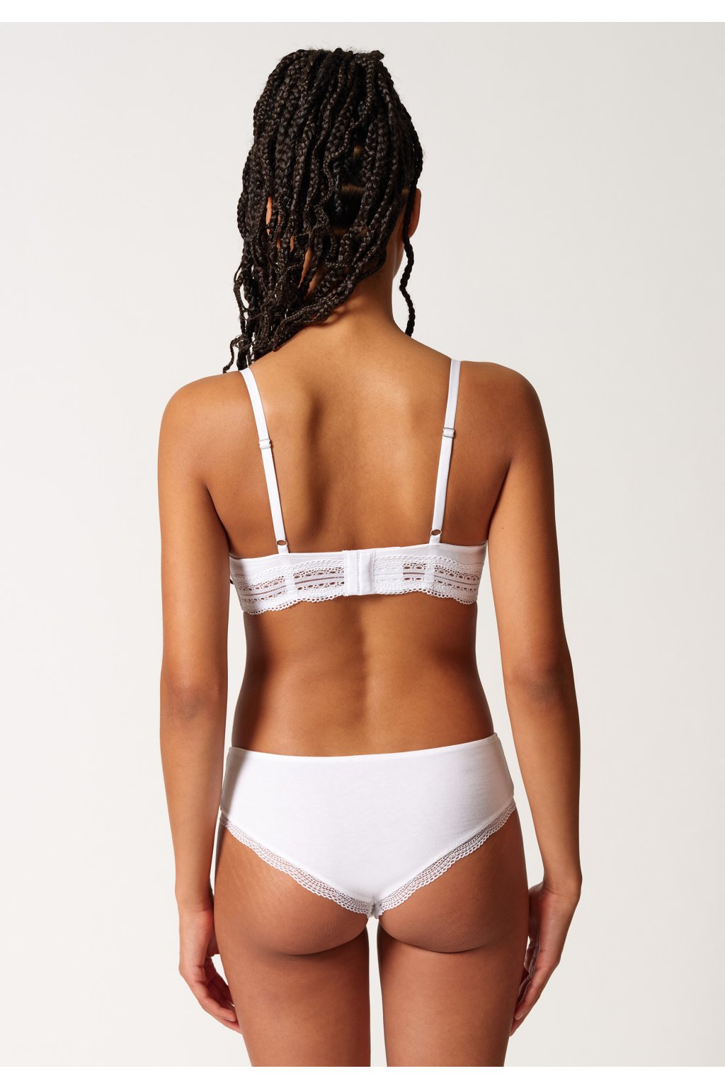 Táto trojuholníková podprsenka s vypchávkami je všestranná v každom ohľade. Je vyrobená z elastickej bavlny. Vďaka tomu je mimoriadne pohodlná a prispôsobivá. Má sofistikovaný, jednoduchý, nadčasový vzhľad, a preto je mimoriadne všestranná. Čipka na zadnej strane je jemným zvýraznením.