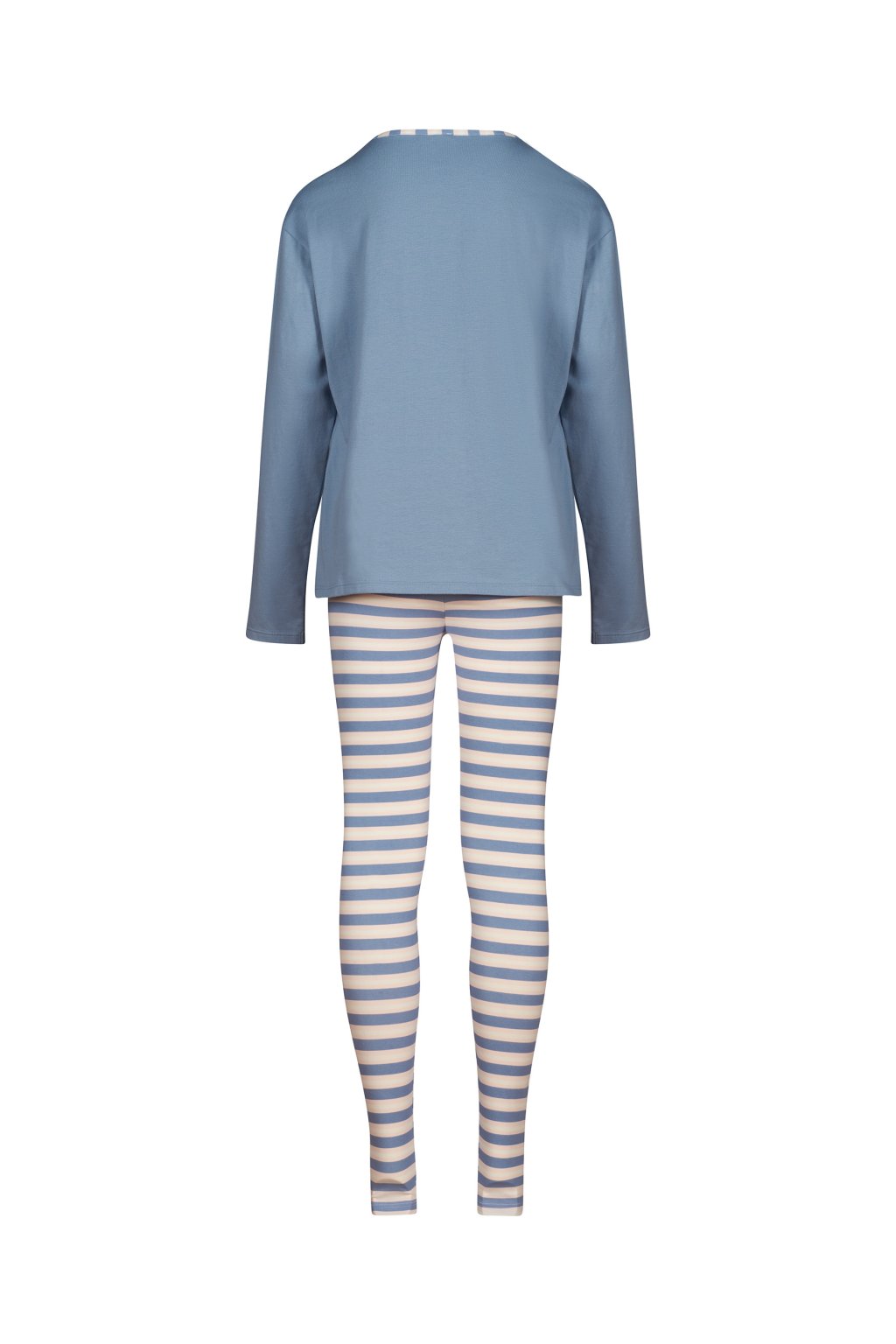 Košeľa a nohavice v detskom pyžamovom súbore | Košeľa s dlhými rukávmi, okrúhlym výstrihom a rovným tvarom | Dlhé pyžamové nohavice v priliehavom legínovom strihu | Elastický pás pokrytý látkou | Jednoduchý džersej z mäkkej elastickej bavlny