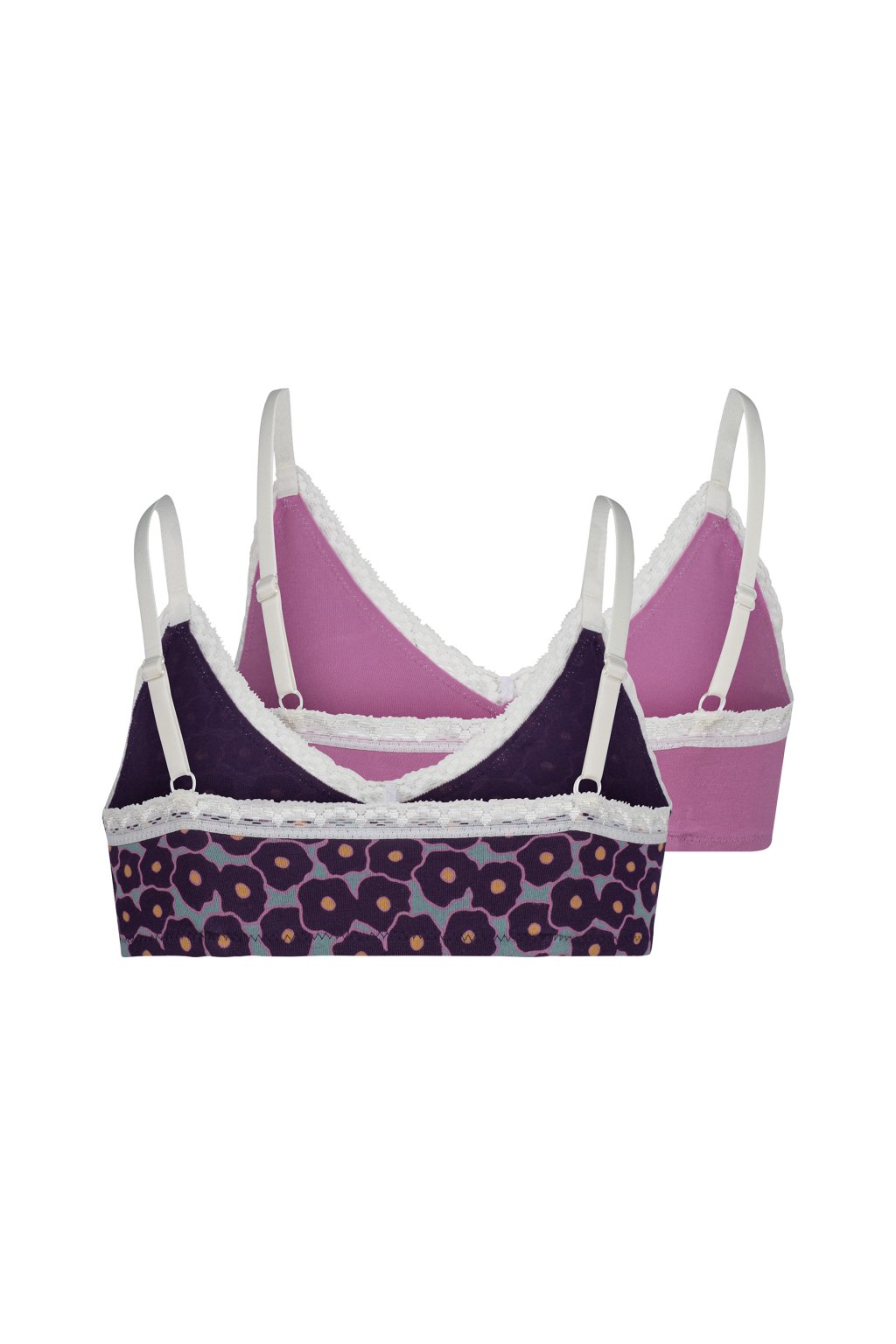 Podprsenka pre dievčatá v praktickom dvojitom balení | Výstrih do V s elastickou čipkou | Podprsenka s elastickou kosticou | Nastaviteľné ramienka na prispôsobenie veľkosti | Mäkká bavlna s elastickým povrchom pre dlhú životnosť