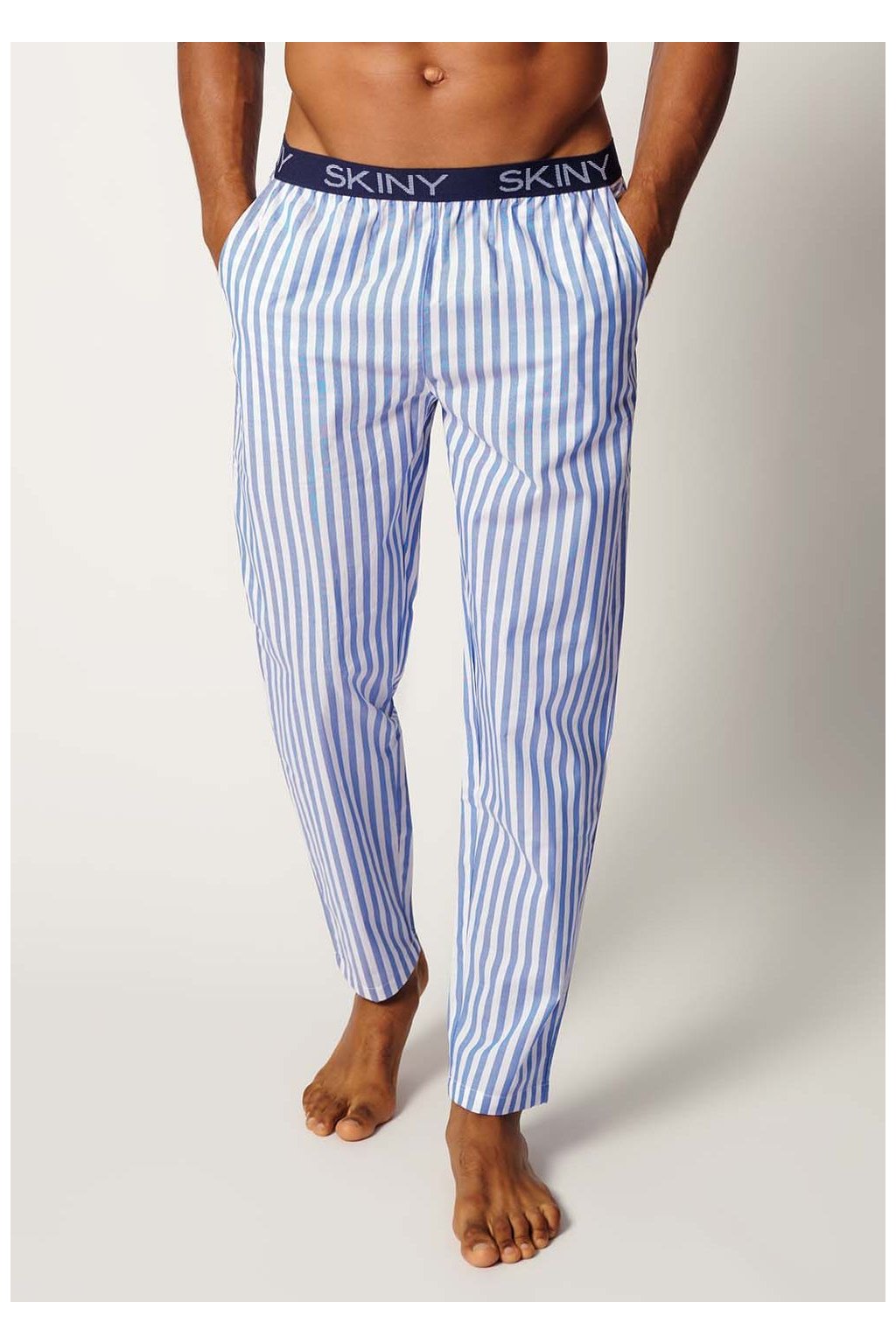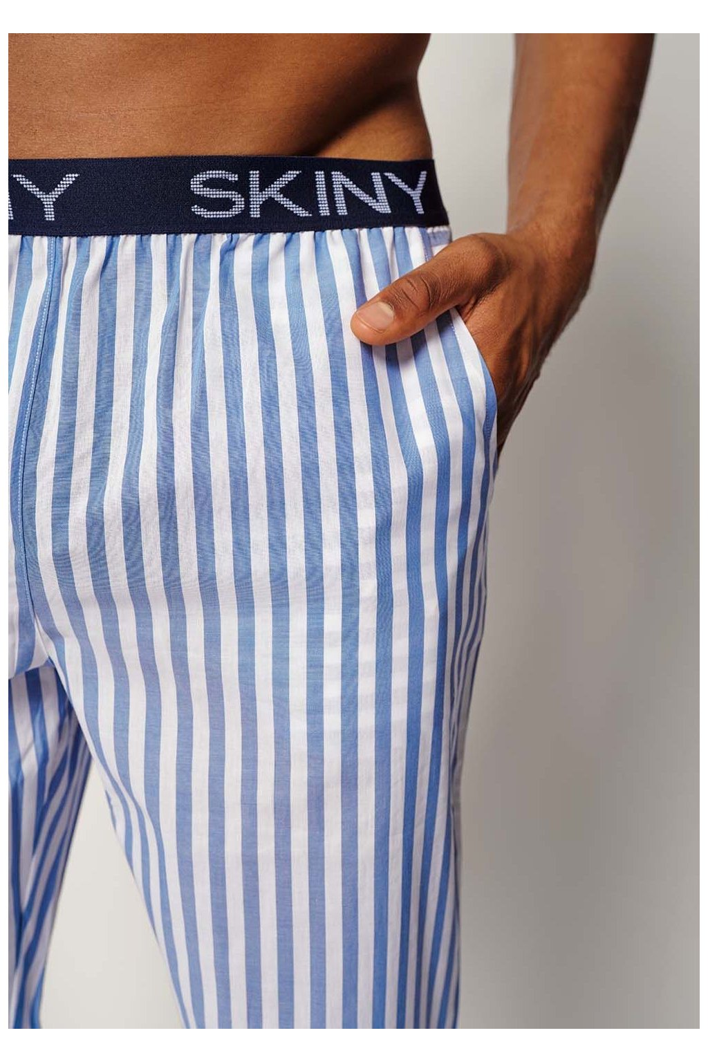 Dlhé pánske nohavice so zúženými nohavicami | Nohavice na spanie s nápisom SKINY na priloženom elastickom páse | Nočná bielizeň s bočnými vreckami | Tkané nohavice z čistej bavlny | Jednoducho udržiavateľné, odolné a trvácne nohavice