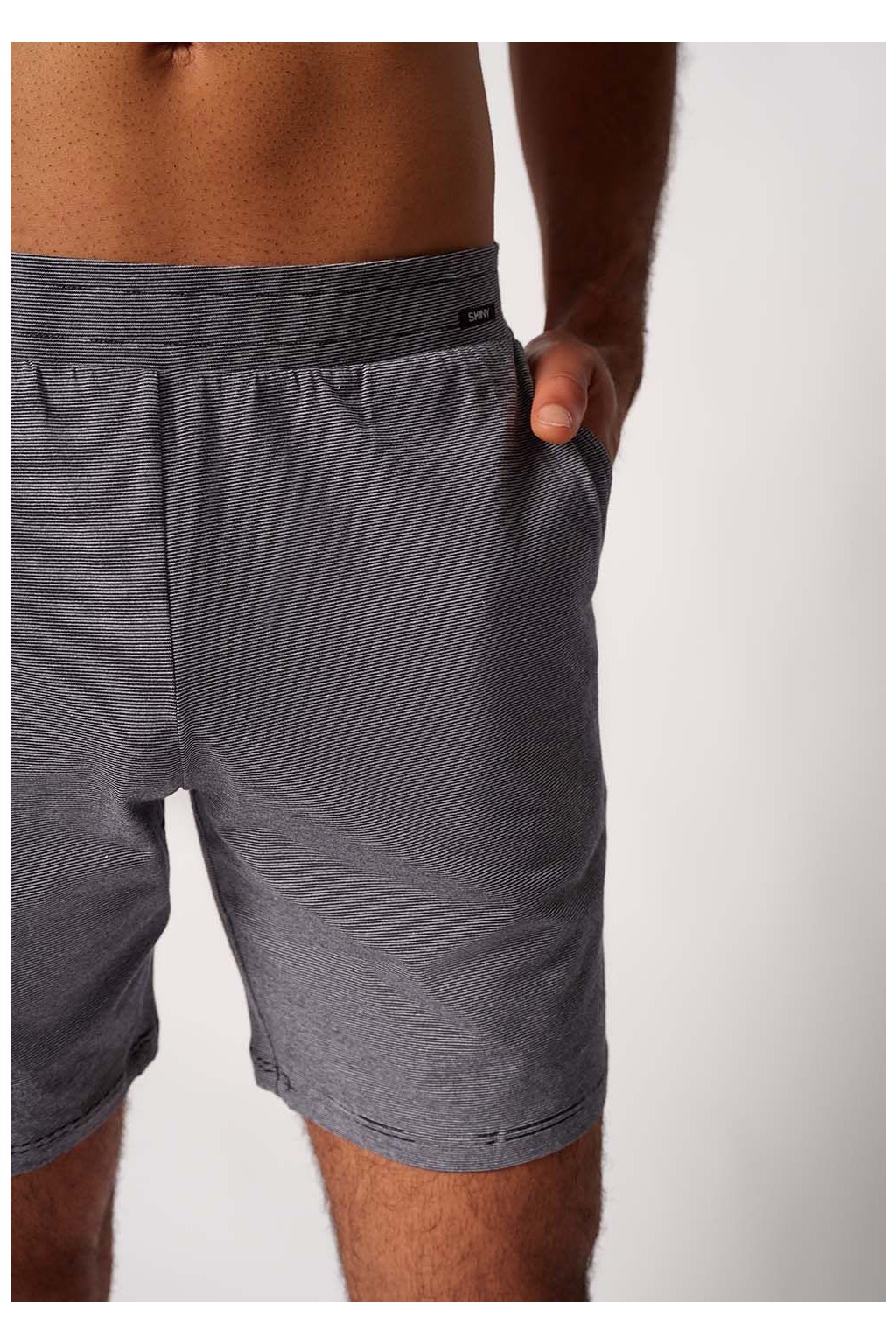 Pánske šortky s rovným strihom | Elastický a látkou potiahnutý pás | Praktické rozrezané vrecká na bokoch | Jednoduchý džersej z odolnej zmesi bavlny a elastanu | Možno nosiť ako pyžamové nohavice a nohavice na jogging