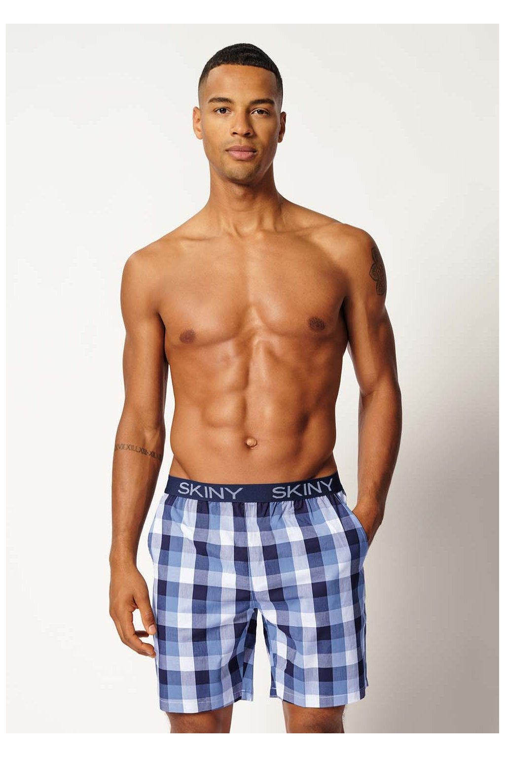 Pánske šortky s rovným strihom | Pripojený elastický pás s nápisom SKINY | Nočná bielizeň s bočnými vreckami | Tkané nohavice zo 100 % bavlny | Ľahko udržiavateľné, odolné a trvácne nohavice na spanie