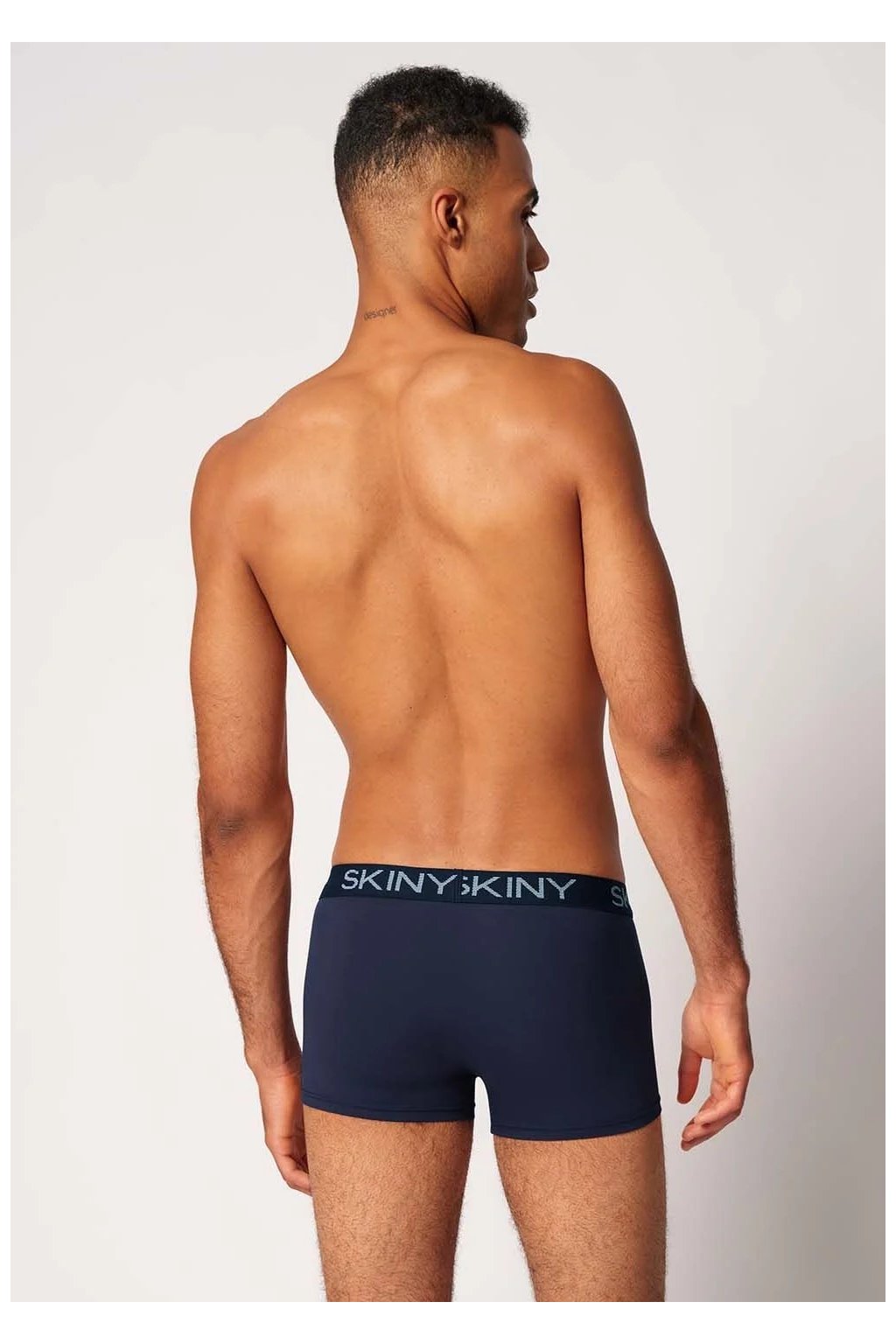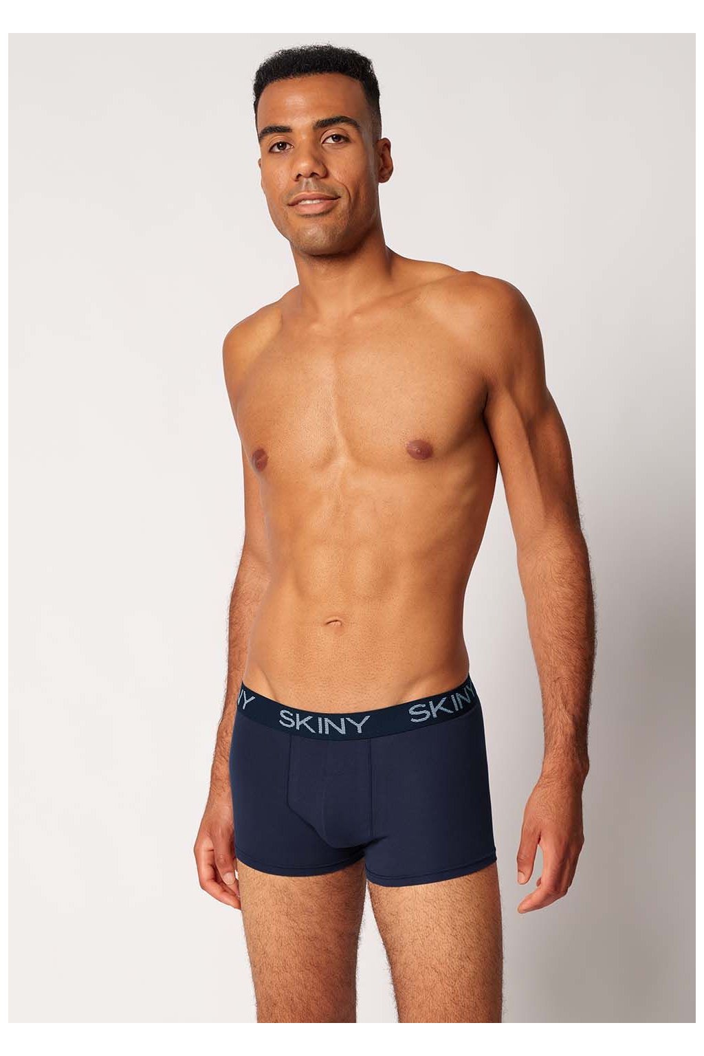Priliehavá spodná bielizeň pre mužov | Trenírky v praktickom dvojitom balení | Logo SKINY v priloženom elastickom páse | Nohavice s perfektným strihom vďaka elastickému obsahu | Pohodlné nosenie a štýlový dizajn