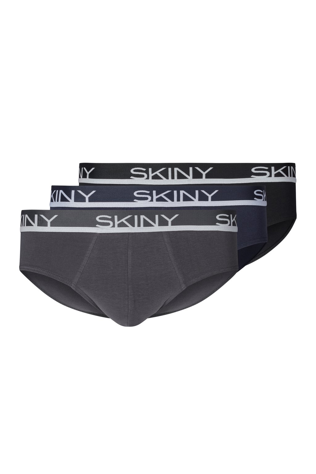 Pánske slipy v praktickom balení po 3 kusoch | Mäkký elastický pás s logom SKINY | Spodná bielizeň z prírodnej bavlny pre vysoký komfort | Strečový materiál pre dokonalé prispôsobenie