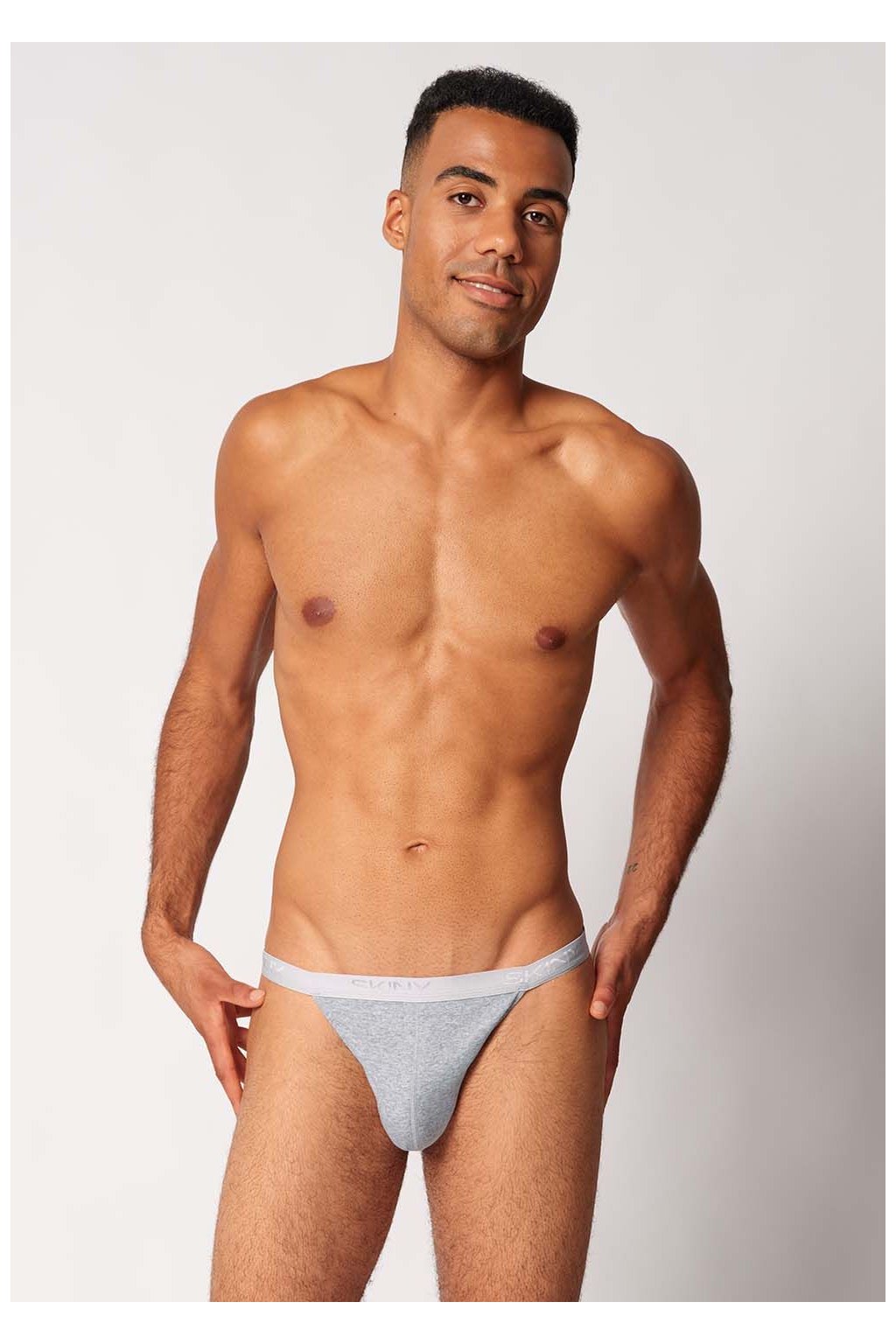 SKINY pánske slipy Tanga 2-balenie Cotton Rib B25 - silver melange