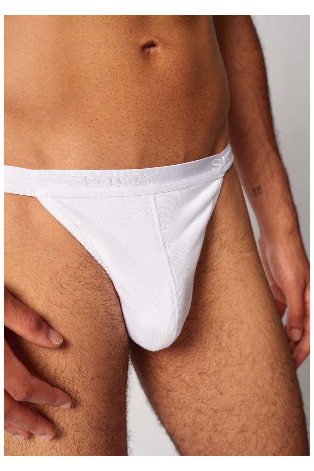 Pánske tangá s úzkym bočným dielom | Bavlnené nohavice v dvojbalení | Úzky elastický pás s logom SKINY | Pohodlné a odolné jemné rebrovanie | Vyrobené v Európe z tkaniny z Rakúska