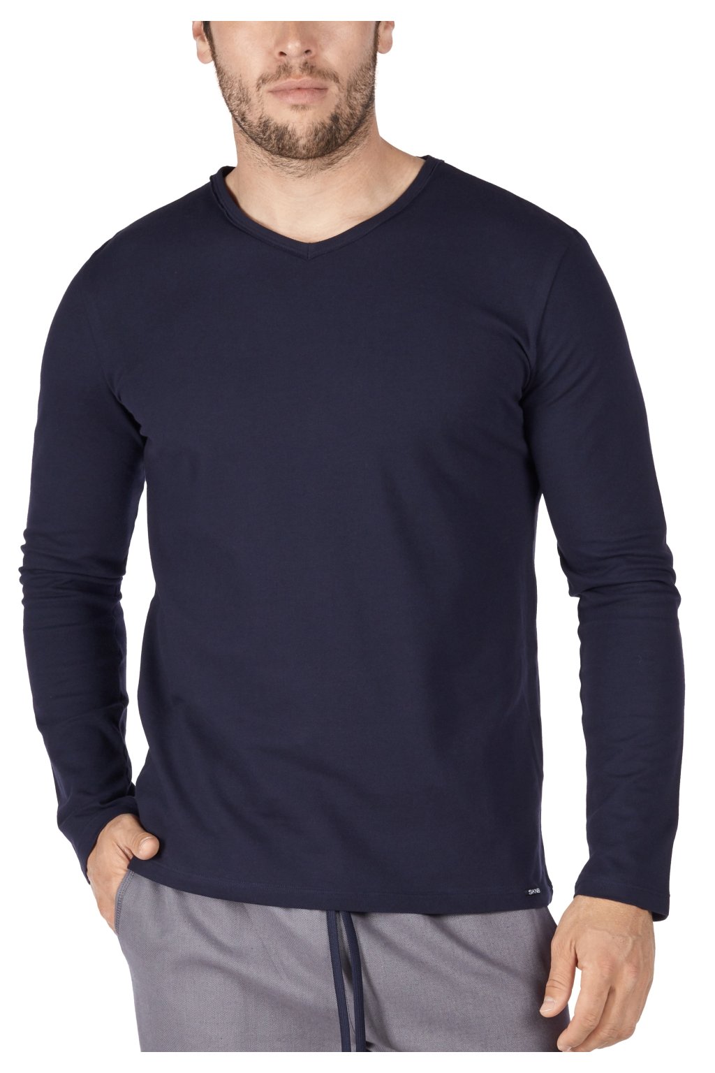 Elegantné trčko s dlhým rukávom z piké látky; kvalita materiálu ako klasické polo tričko; moderný výstrih do V; certifikácia Eco-Tex Standard 100