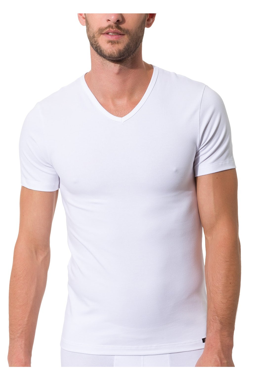 Klasické tričko s krátkym rukávom a výstrihom do V. Jemná bavlna a elastanová kvalita sú vyrobené v Rakúsku. Technológia Smooth-Skin zabraňuje tvorbe žmolkov na povrchu látky a zaisťuje efekt „ako nová“. Oeko-Tex Standard 100.