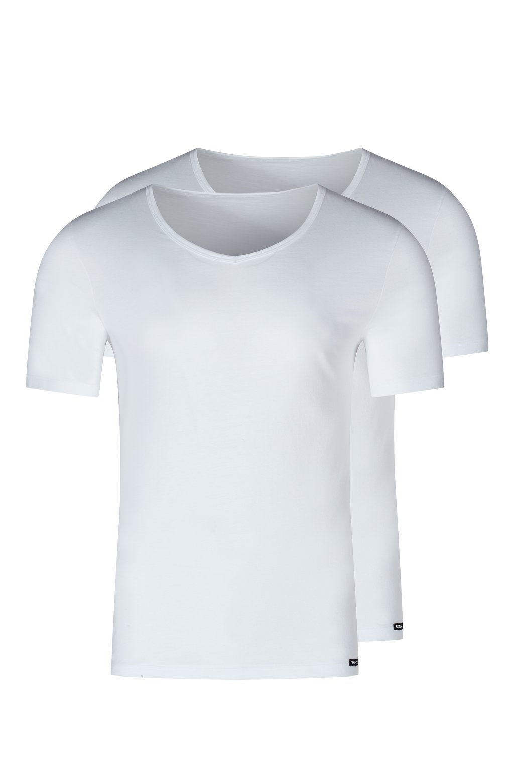 SKINY pánske V-tričko krátky rukáv 2-balenie Shirt Multipack B25 - white