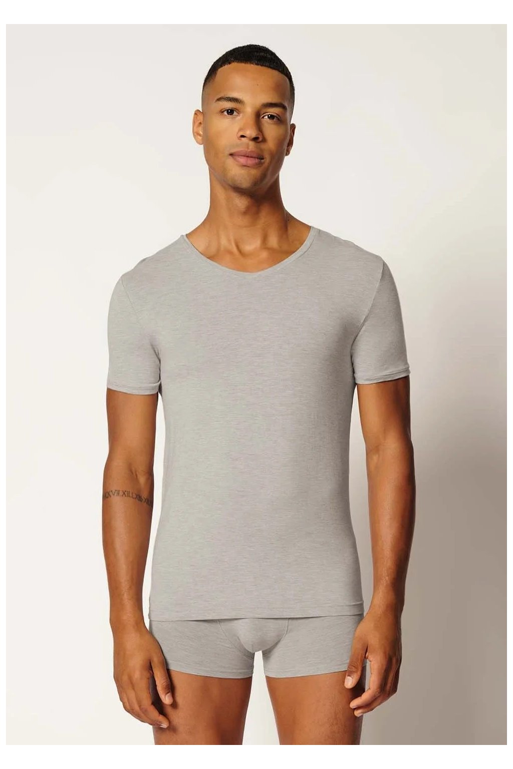 SKINY pánske V-tričko krátky rukáv Bamboo Deluxe B25 - stonegrey melange