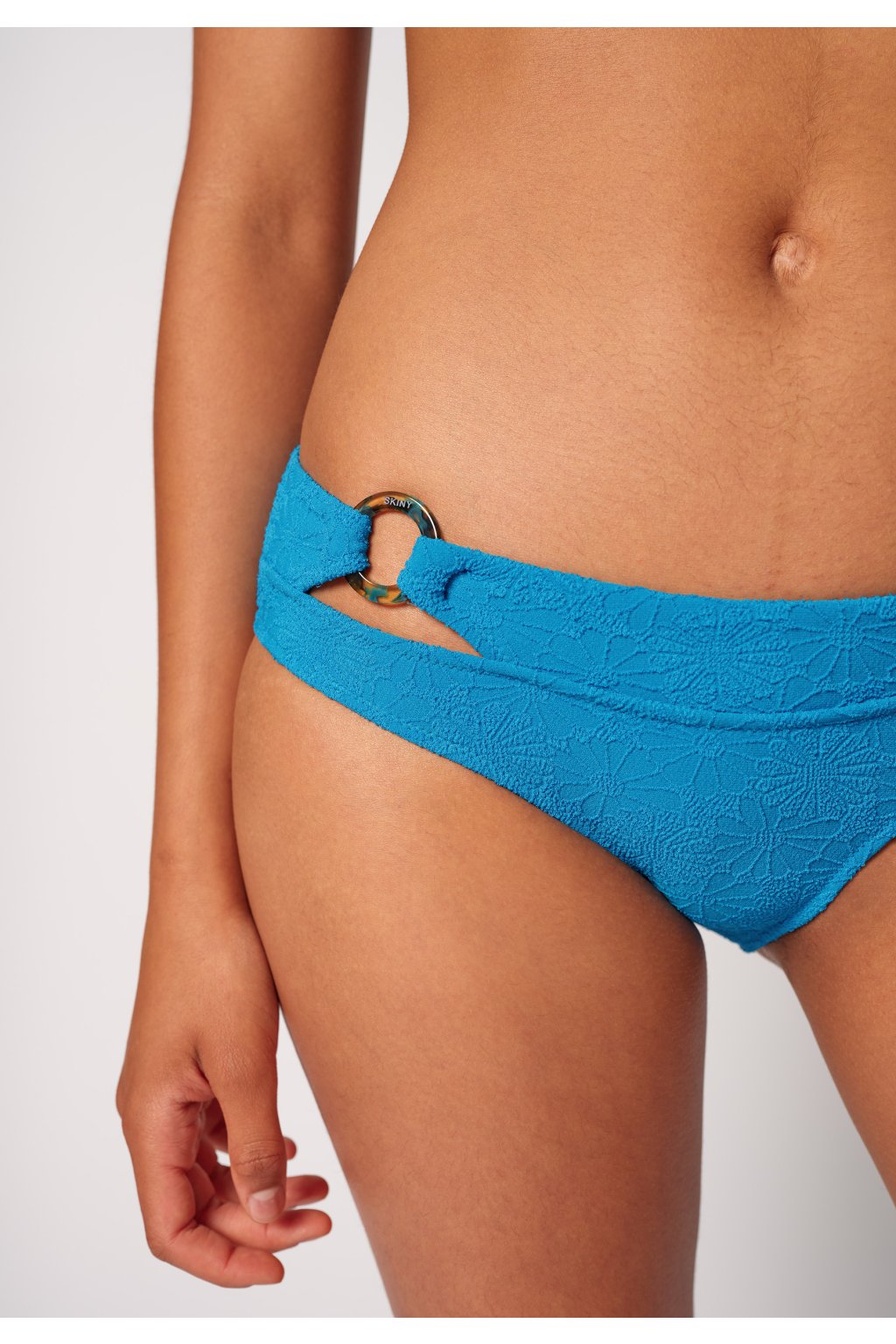 Midi nohavičky vysokého strihu ako plavky | Detail prsteňa s bočným pripevnením so vzhľadom opasku | Úzky vnútorný pás a elastické nohavice | Elastické mikrovlákno kvality | Dá sa kombinovať so všetkými bikinami zo série