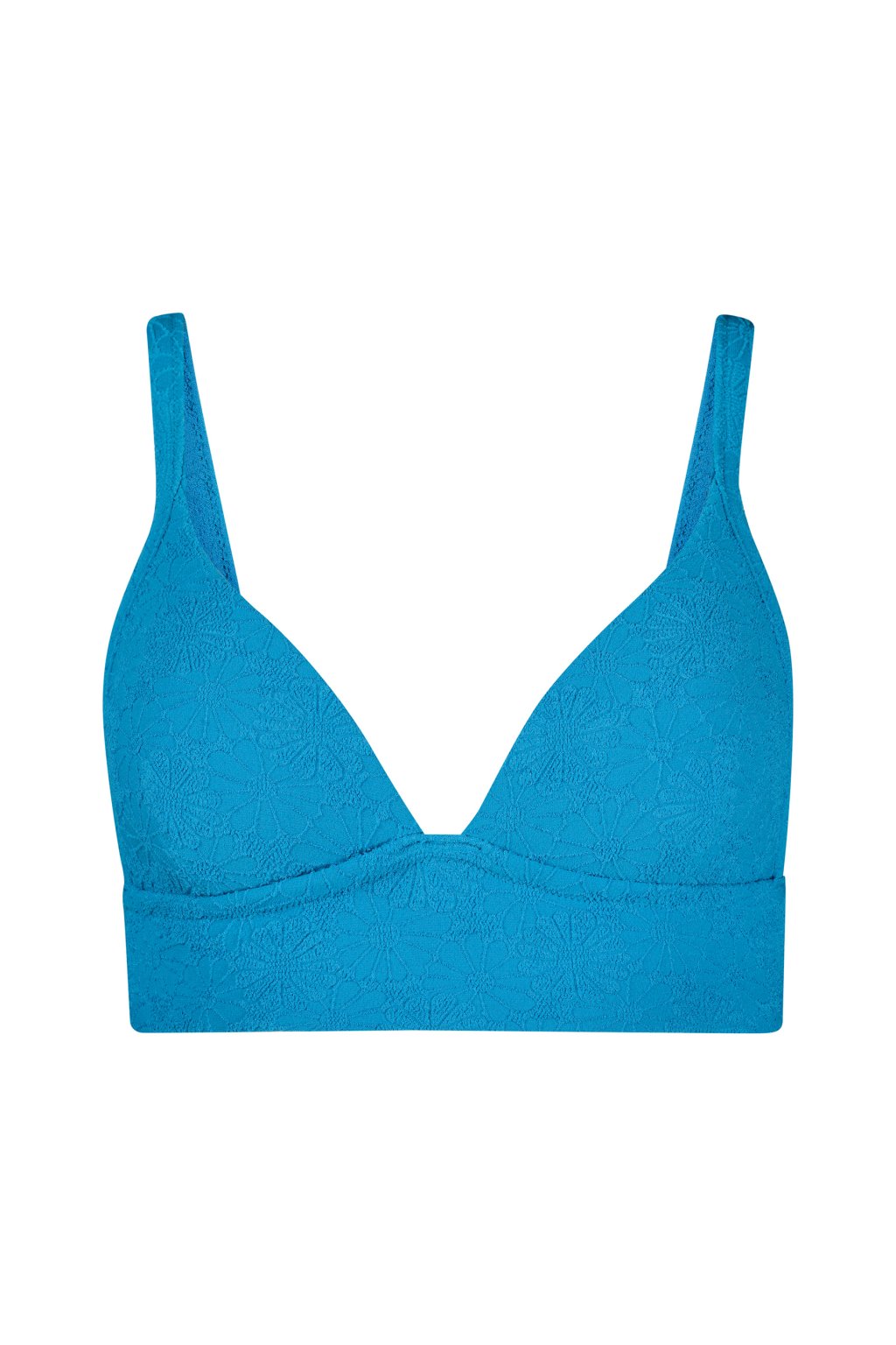 Vystužený trojuholníkový top | Lemovanie pri prieramku, prechádzajúce do širokých ramienok | Individuálne nastaviteľné ramienka | Vzadu nastaviteľné zapínanie na háčik | Kvalitné elastické mikrovlákno