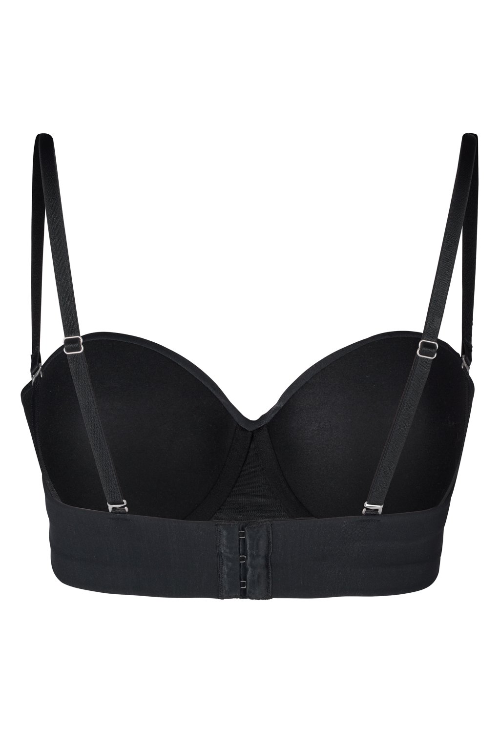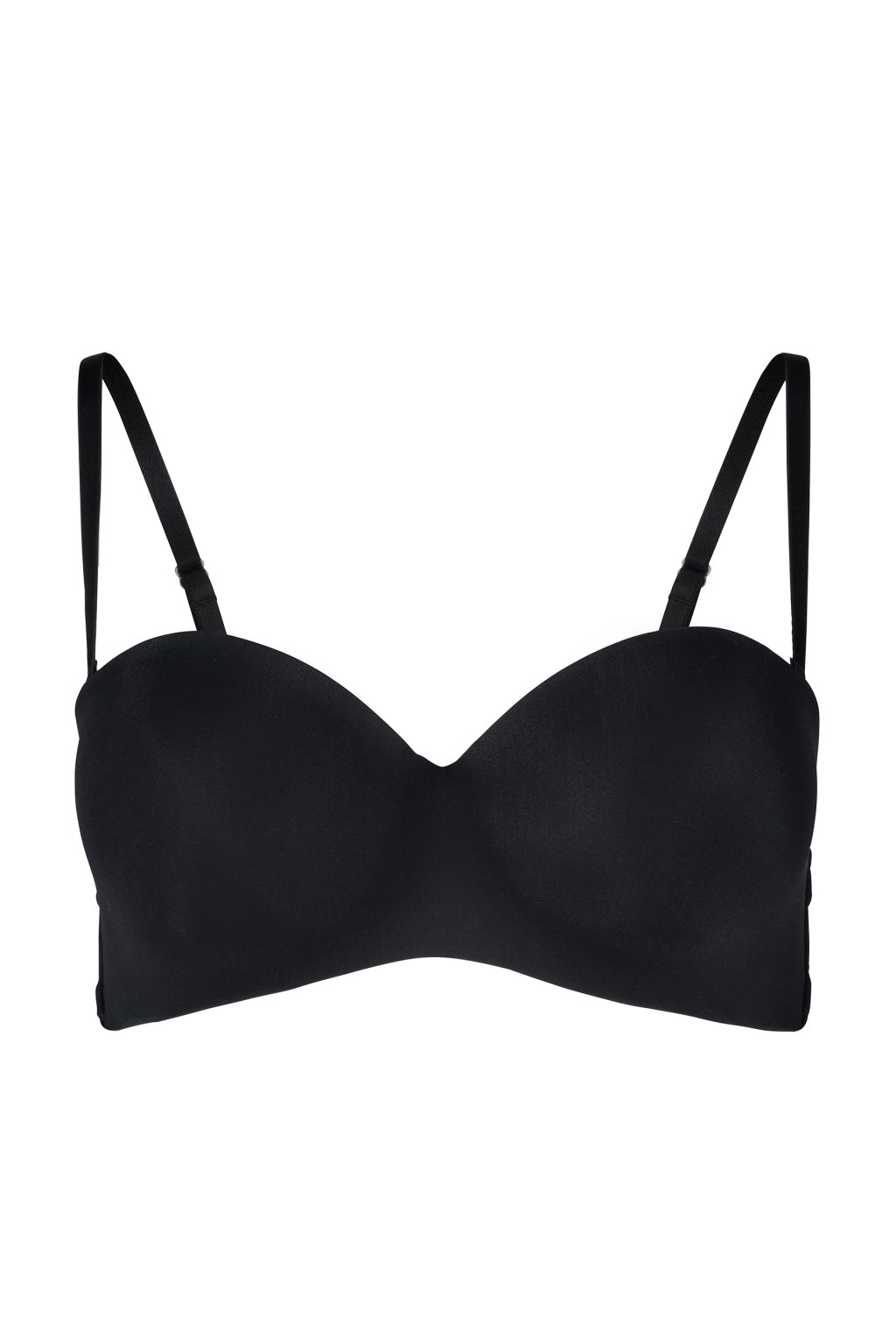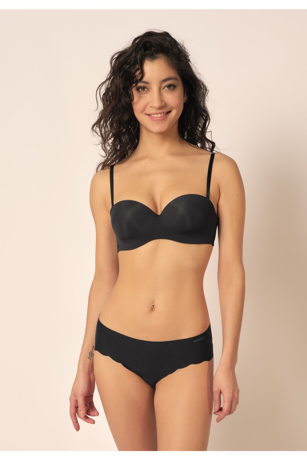 Vystužená podprsenka typu balconette s košíčkami a kosticami | Silikónový pásik na bočnom mostíku poskytuje oporu | Ramienka 3 v 1: rovné, krížové alebo bez ramienok | Spodná bielizeň s nastaviteľným zapínaním na háčiky na zadnej strane | Kvalitné mäkké, elastické mikrovlákno