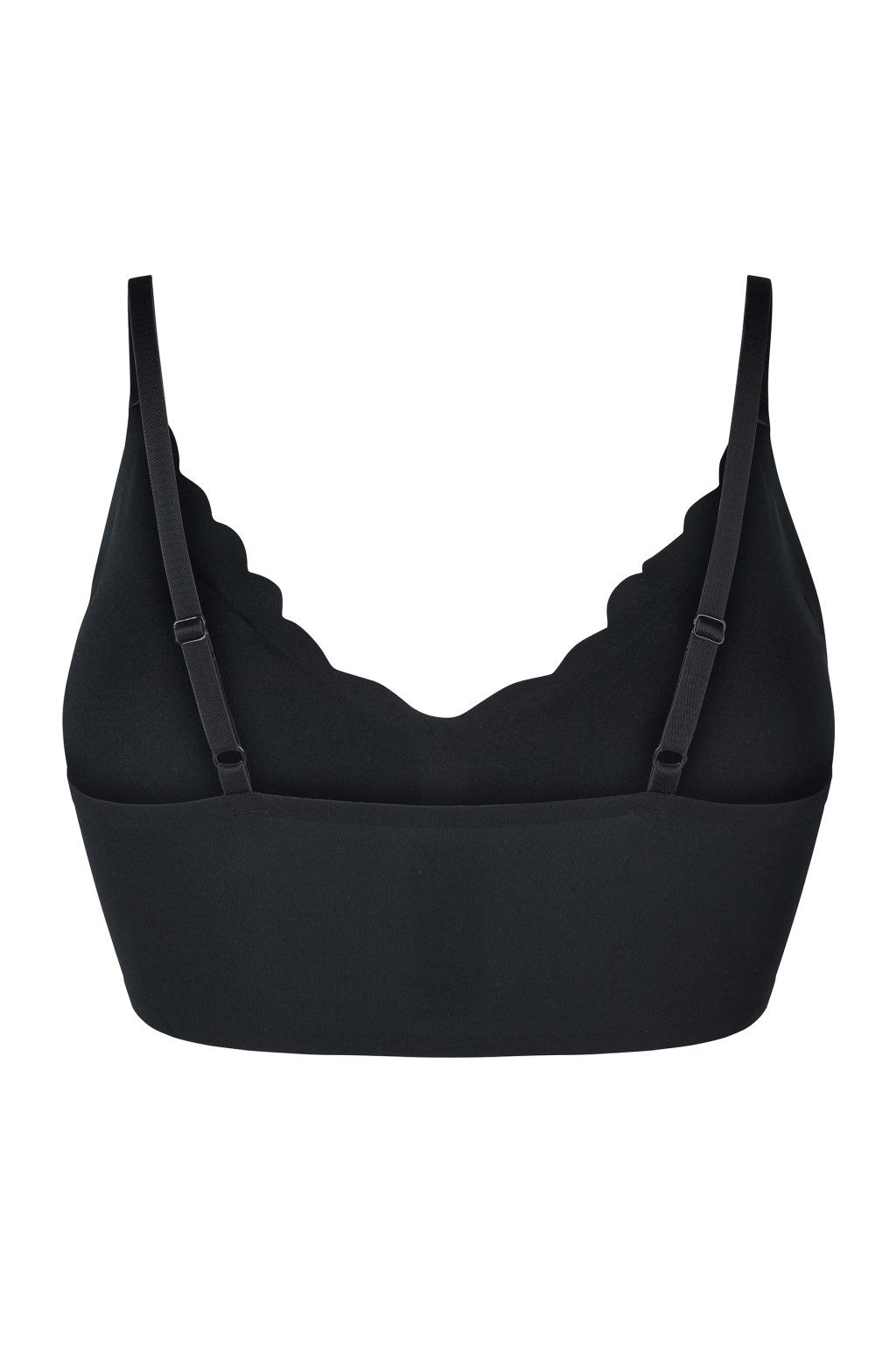 Priliehavé poprsie s odnímateľnými vypchávkami | Výstrih do V s krásnym vrúbkovaným okrajom | Nastaviteľné, úzke ramienka pre bezpečné uchytenie | Bezšvová spodná bielizeň pre neviditeľný efekt | Prsia z mäkkého a elastického mikrovlákna