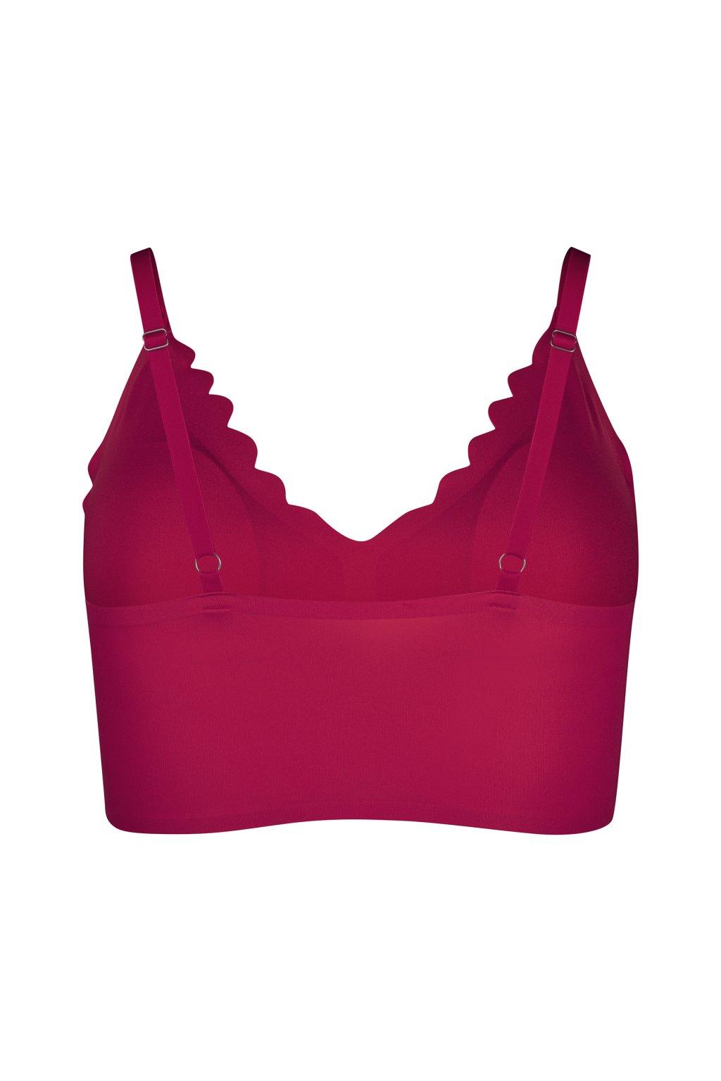 Priliehavé poprsie s odnímateľnými vypchávkami | Výstrih do V s krásnym vrúbkovaným okrajom | Nastaviteľné, úzke ramienka pre bezpečné uchytenie | Bezšvová spodná bielizeň pre neviditeľný efekt | Prsia z mäkkého a elastického mikrovlákna