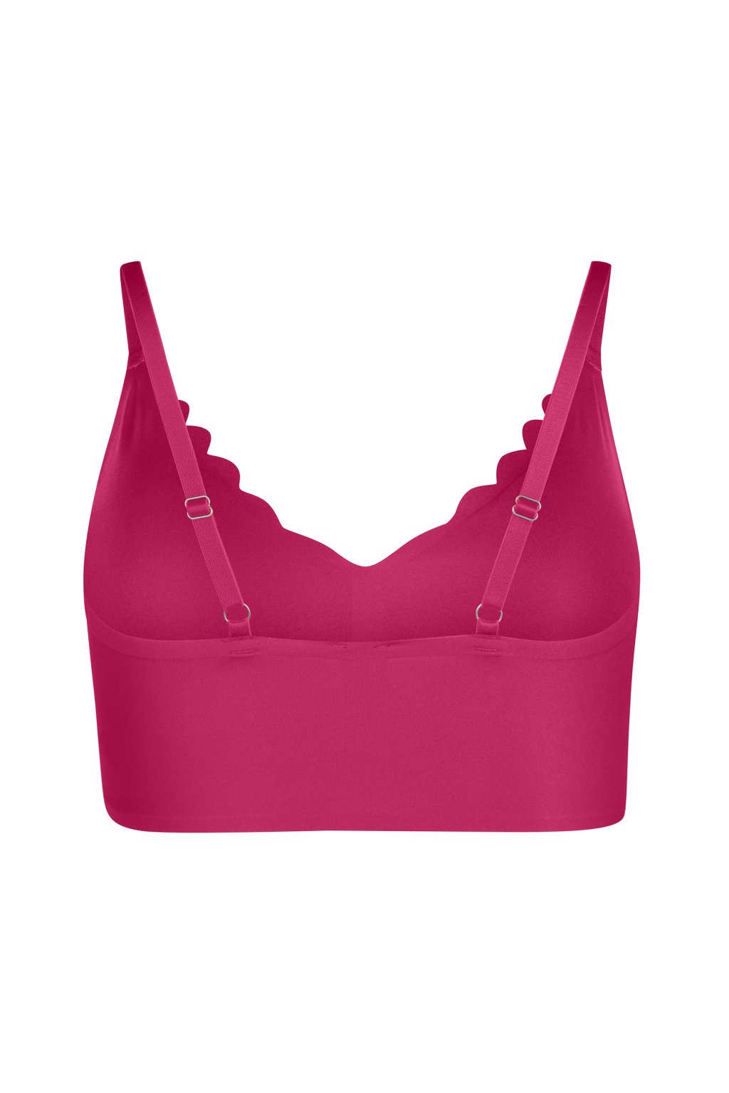 Priliehavé poprsie s odnímateľnými vypchávkami | Výstrih do V s krásnym vrúbkovaným okrajom | Nastaviteľné, úzke ramienka pre bezpečné uchytenie | Bezšvová spodná bielizeň pre neviditeľný efekt | Prsia z mäkkého a elastického mikrovlákna