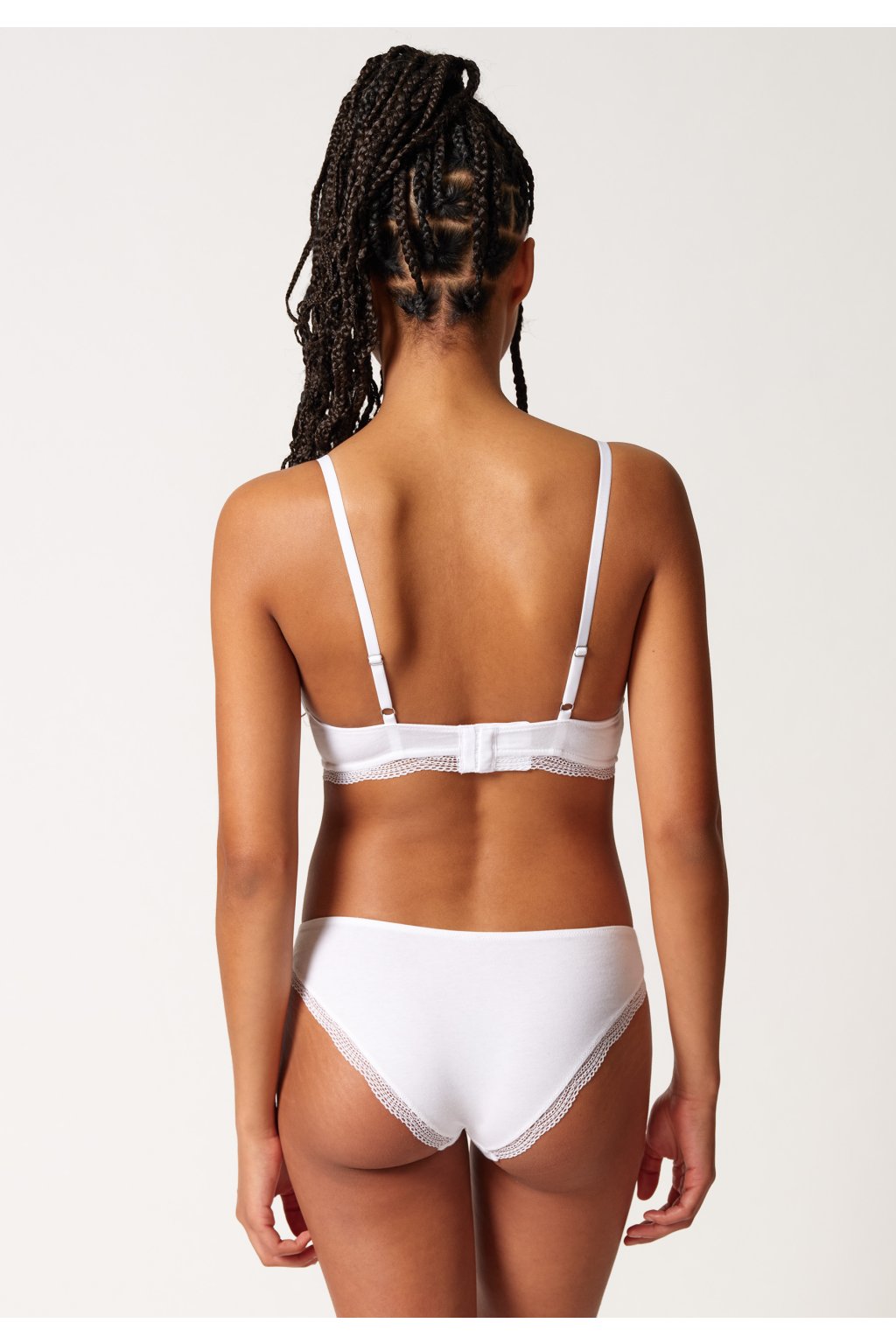 Táto mäkká podprsenka môže byť základom pre všetko vo dne aj v noci, v každodennom živote aj pri špeciálnych príležitostiach. Je vyrobená z elastickej bavlny a je mimoriadne pohodlná. Nastaviteľné ramienka zvyšujú faktor pohodlia. Okrem vyberateľných vypchávok je ozdobou spodnej bielizne čipka.