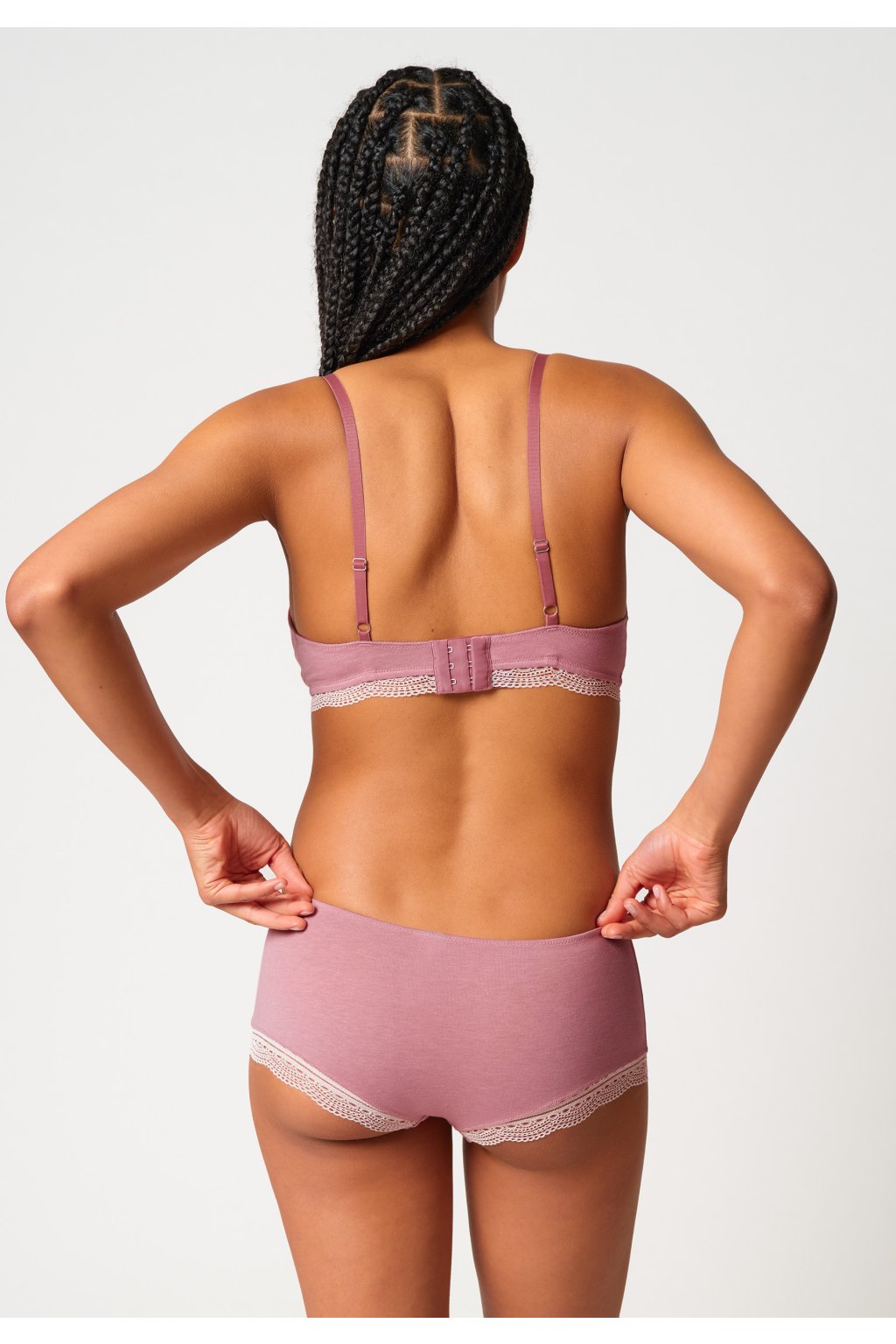Táto mäkká podprsenka môže byť základom všetkého - vo dne iv noci, v každodennom živote aj pri zvláštnych príležitostiach. Je vyrobená z bavlny so strečom a je super pohodlná. Nastaviteľné popruhy zvyšujú komfort. Okrem odnímateľných vypchávok je ozdobou spodnej bielizne čipka.