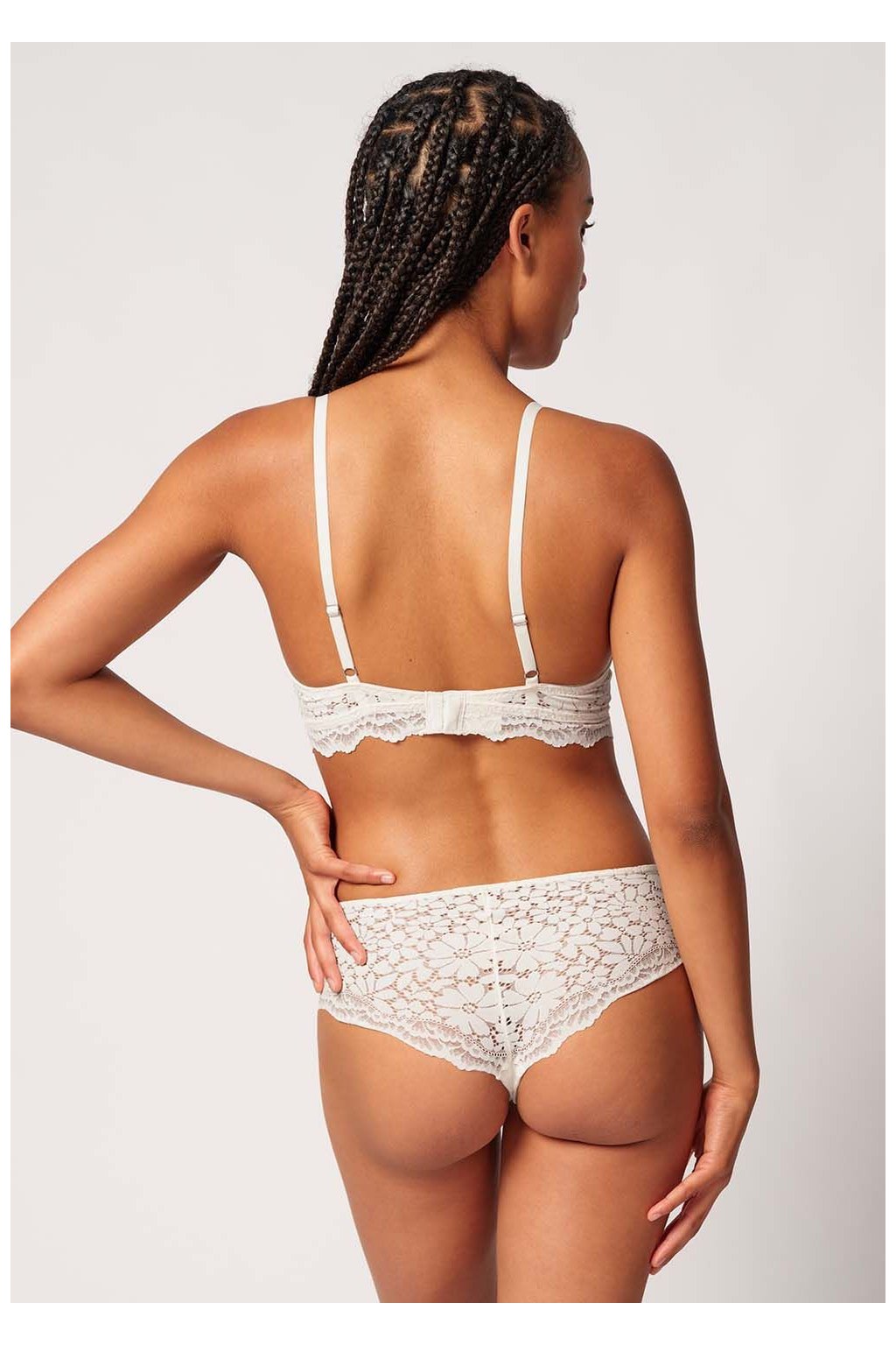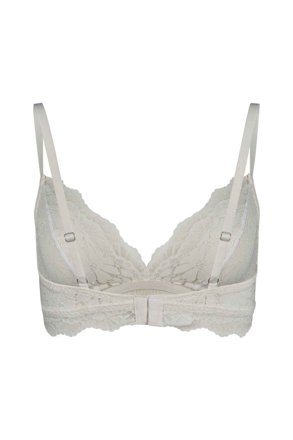 Mäkká podprsenka s kosticami | Vyrobená výhradne z recyklovanej čipky | Zvodný krajkový okraj s mašľou vo výstrihu | Individuálne pohodlie vďaka nastaviteľným ramienkam | Nastaviteľné zapínanie na háčiky na chrbte