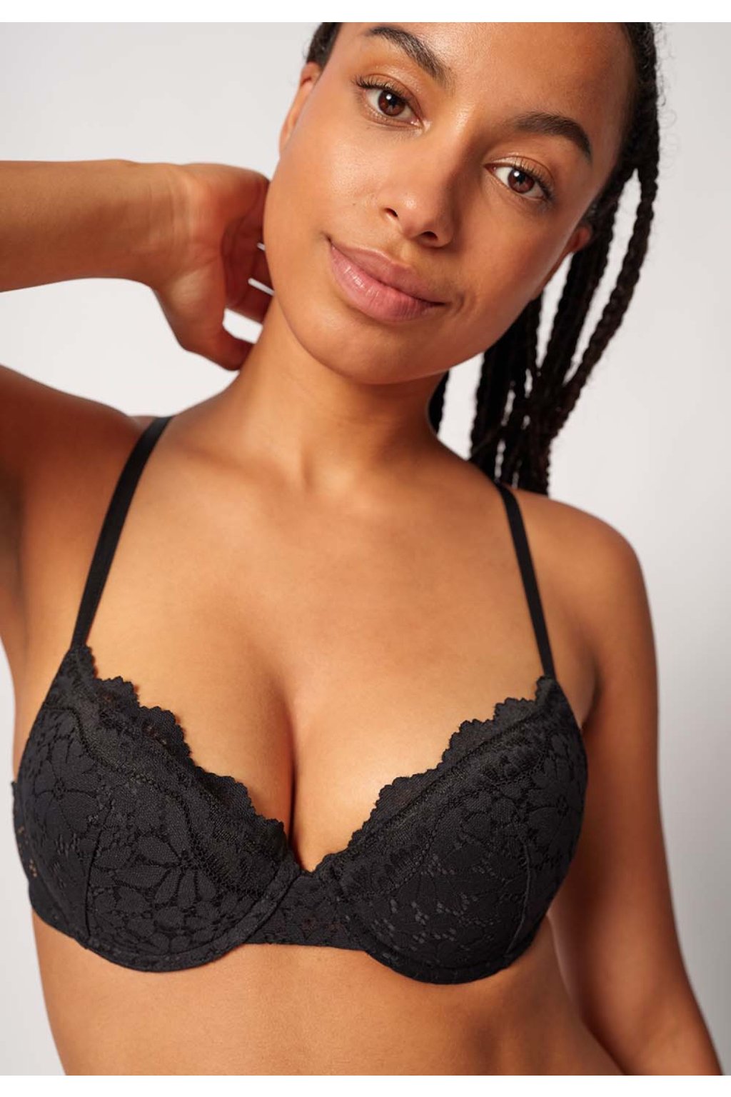Táto push-up podprsenka pokrytá recyklovanou čipkou najlepšie ukáže vaše krivky. Čipkovaný okraj s mašľou vo výstrihu vytvára dokonalý WOW efekt, zatiaľ čo nastaviteľné ramienka a zapínanie na háčiky na chrbte zaručujú optimálnu podporu.
