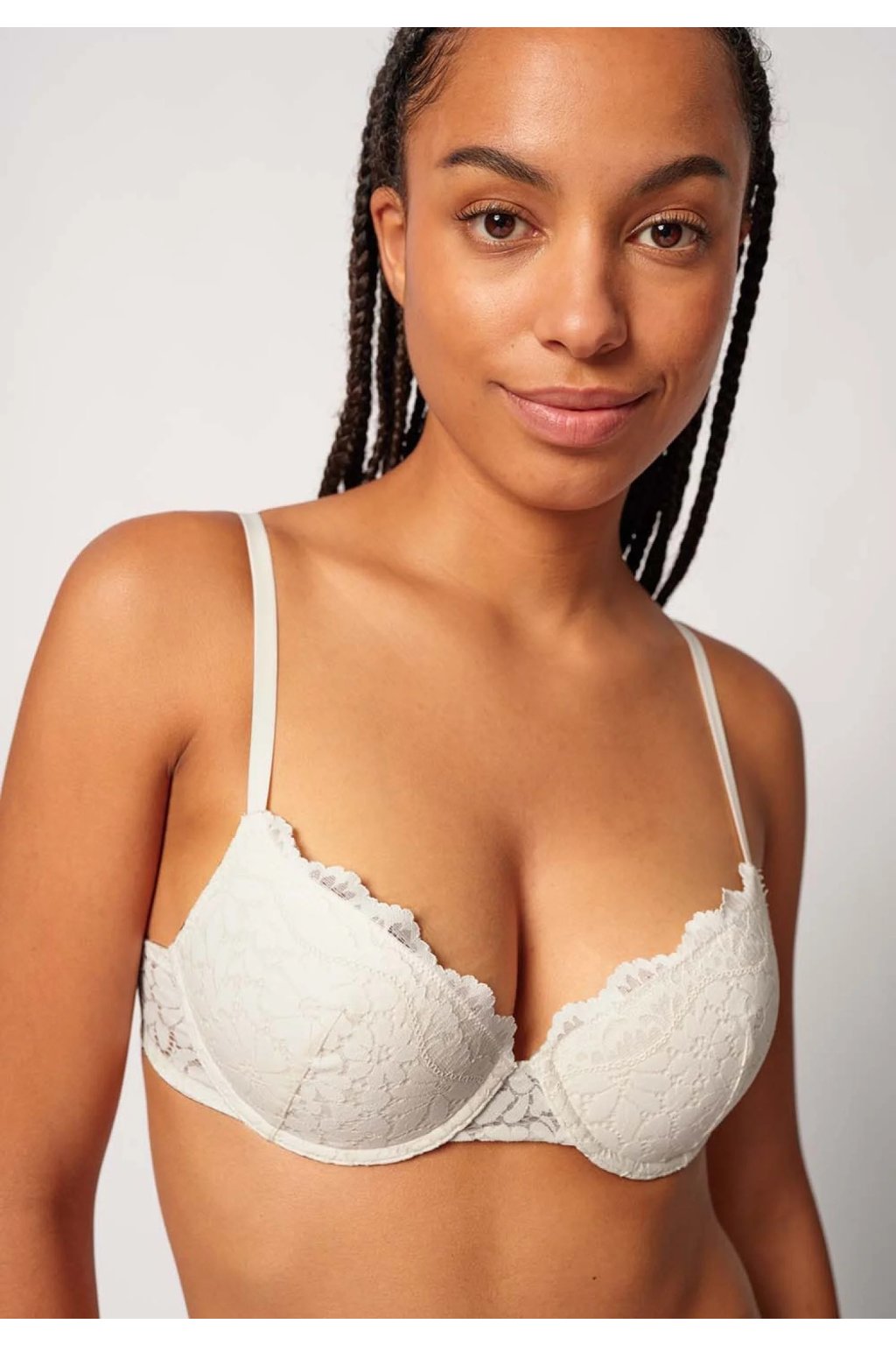 Táto push-up podprsenka pokrytá recyklovanou čipkou najlepšie ukáže vaše krivky. Čipkovaný okraj s mašľou vo výstrihu vytvára dokonalý WOW efekt, zatiaľ čo nastaviteľné ramienka a zapínanie na háčiky na chrbte zaručujú optimálnu podporu.