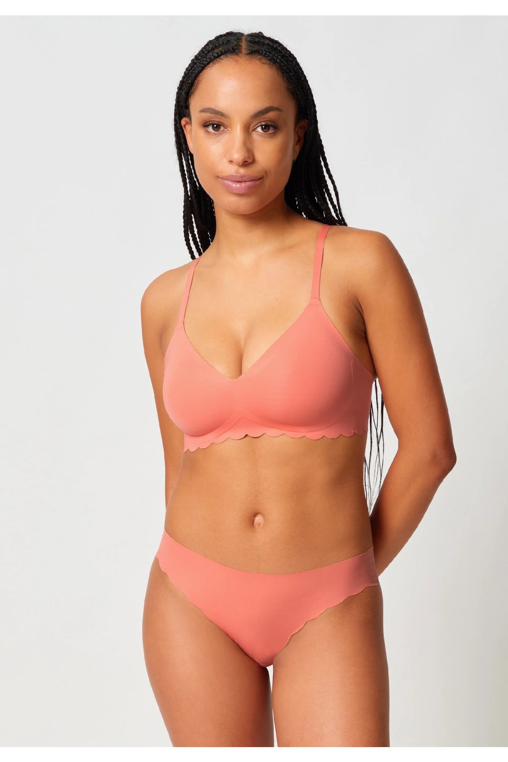 Ďalší vývoj najpredávanejšej série „Micro Essentials“. Dvojvrstvová trojuholníková podprsenka s odnímateľnými vložkami. Mierne zaoblený výstrih do V. Výnimočne pohodlná vďaka strihu a lepeným okrajom. Zapínanie na suchý zips a nastaviteľné, prekrížené ramienka. Spodná bielizeň z mikrovlákna.