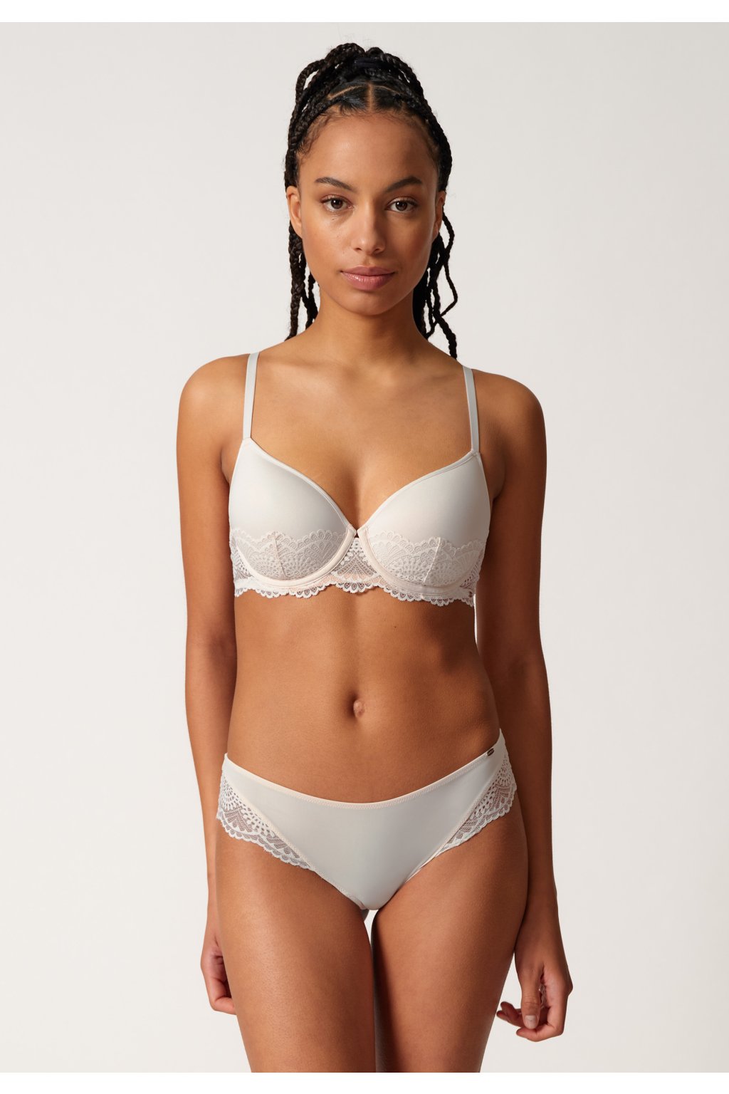Táto čipkovaná podprsenka spája pohodlie s takým krásnym dizajnom, že ženy budú chcieť stáť pred zrkadlom. Čipkované zvýraznenia majú svoje vlastné kúzlo. Najmä s ladiacimi nohavičkami. Skutočnosť, že podprsenka s kosticami má aj skvelý strih, robí toto spodné prádlo dokonalým blahom.