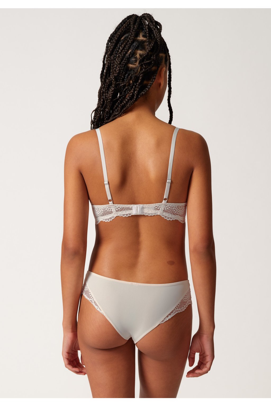 Podprsenka s košíčkami vyrobená z inovatívneho 3D dištančného materiálu | Časti košíčkov pokryté čipkou | Čipkované bočné panely a kostice | Individuálne nastaviteľné ramienka | Prakticky nastaviteľné zapínanie na háčiky na chrbte