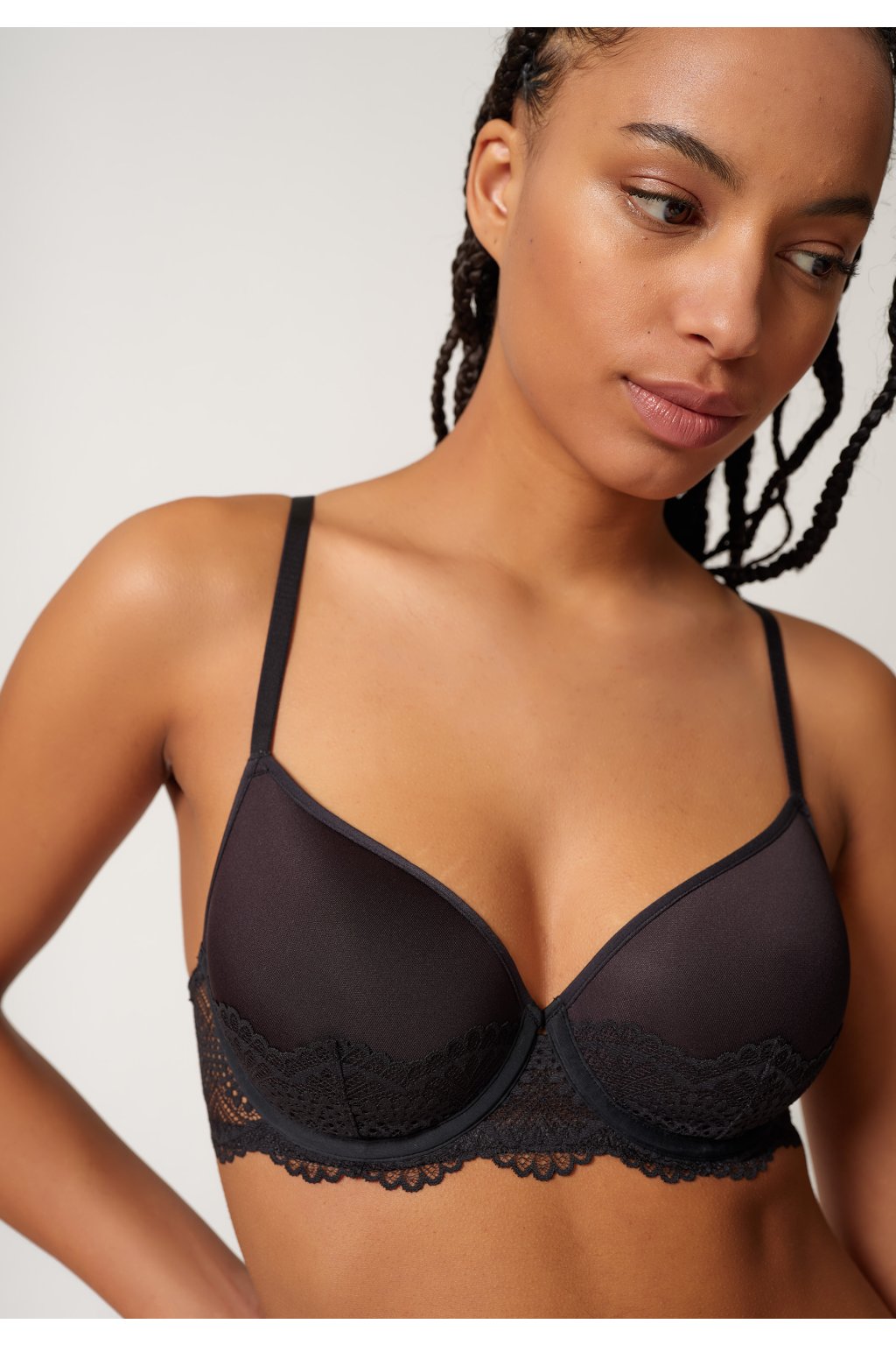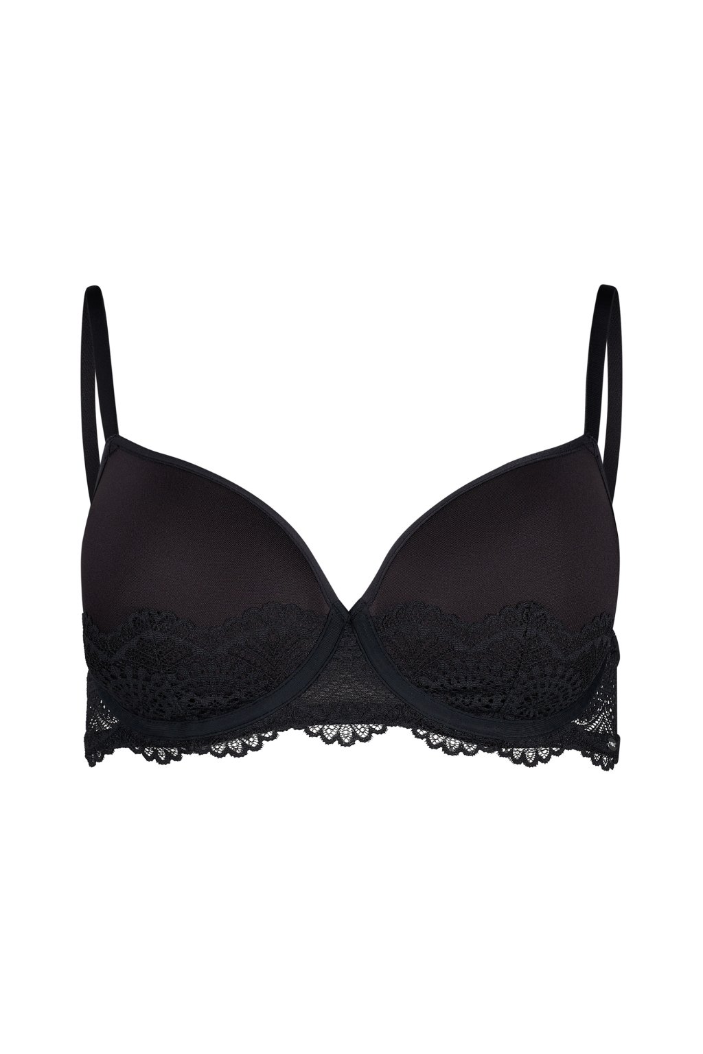 Podprsenka s košíčkami vyrobená z inovatívneho 3D dištančného materiálu | Časti košíčkov pokryté čipkou | Čipkované bočné panely a kostice | Individuálne nastaviteľné ramienka | Prakticky nastaviteľné zapínanie na háčiky na chrbte